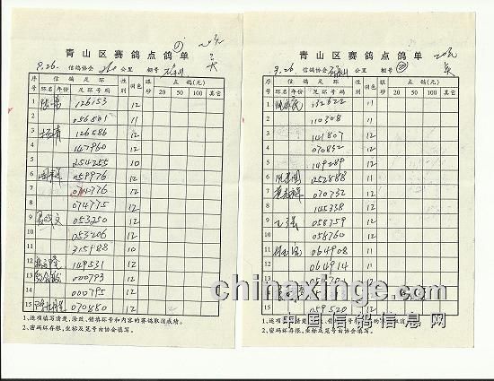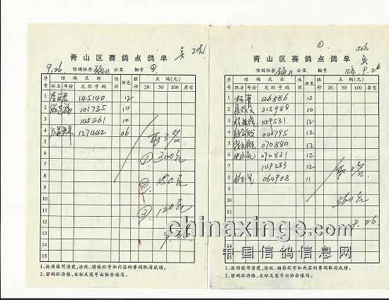武汉市洪山区信鸽协会确山竞赛集鸽总羽数及指定鸽清单