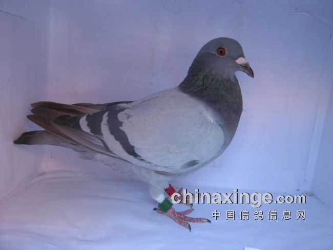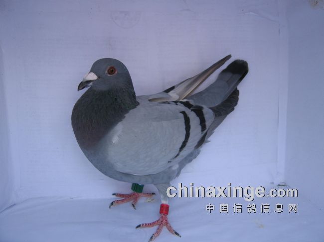 冠军鸽:红翔鸽舍 000077 06-12-056176 雌-灰白条-黄眼