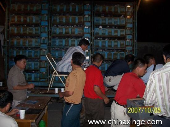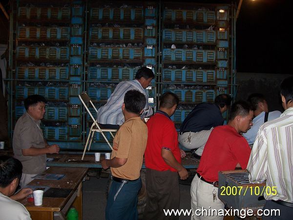 集鸽后,不少鸽友仍围聚在一起,谈论着明天-----,今夜一定无眠!
