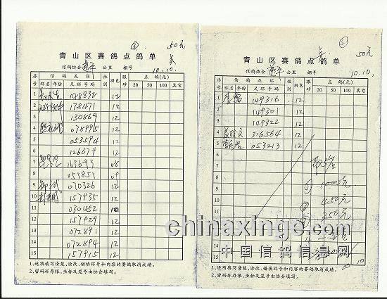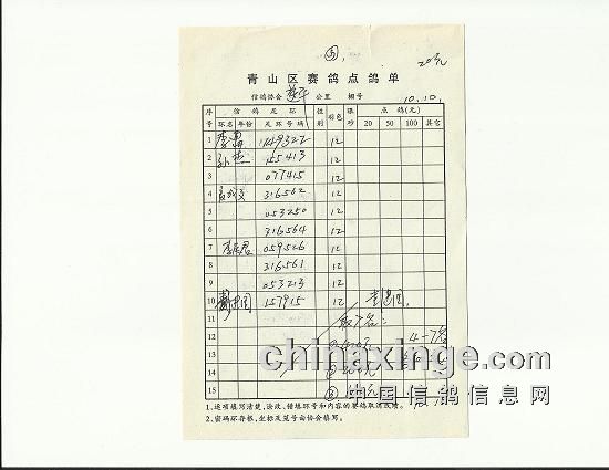 武汉市洪山区信鸽协会遂平竞赛集鸽羽数及指定鸽清单