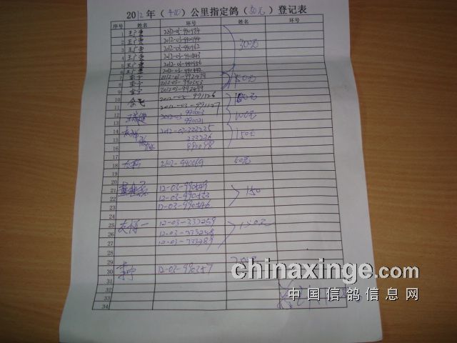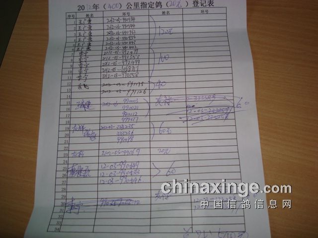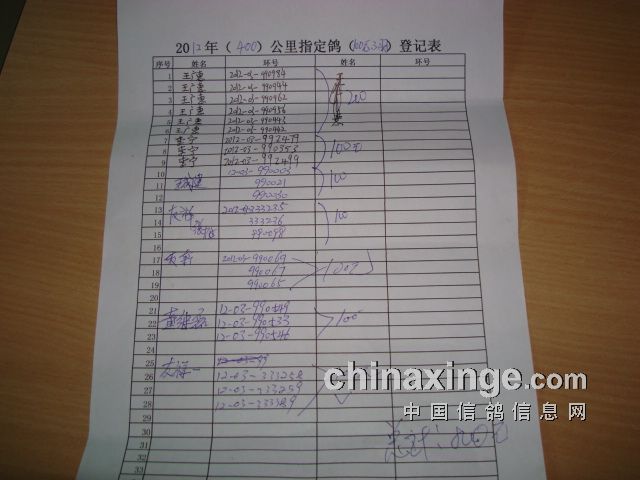2012年廊坊市区秋季400公里比赛指定鸽明细