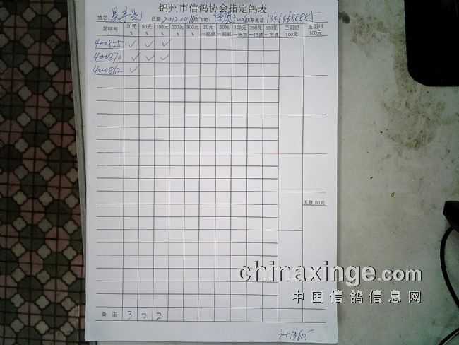 平翔信鸽俱乐部2021年秋季特比环截止1月4日售环2150枚