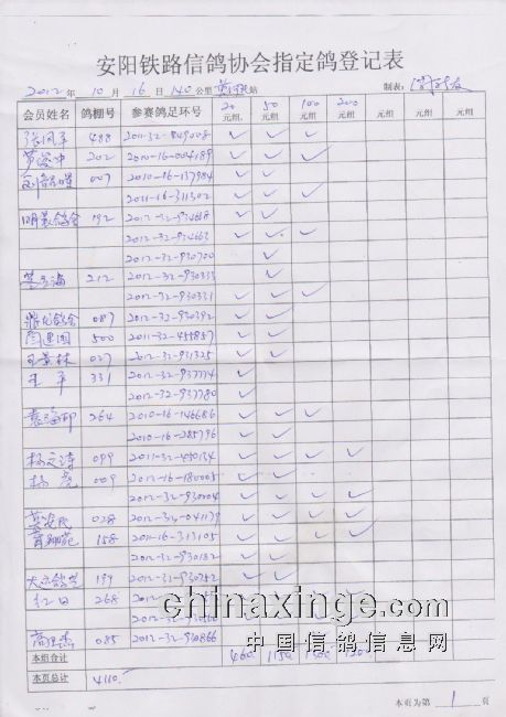 河南省安阳市铁路信鸽协会