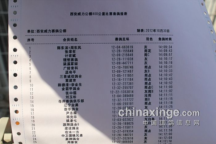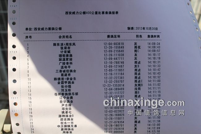 西安威力赛鸽公棚2012年秋第十四届2299万三关竞赛