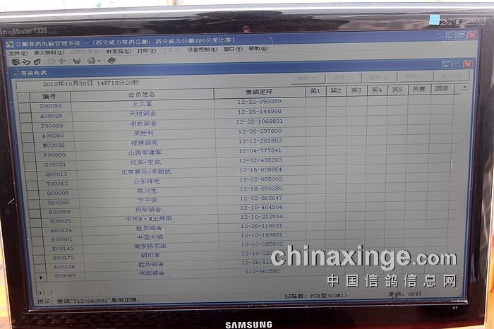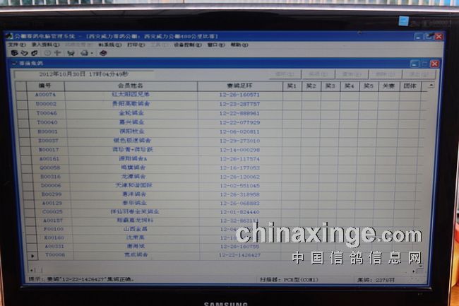 截止2012年10月30日下午17点已经扫描入笼2380羽参赛鸽