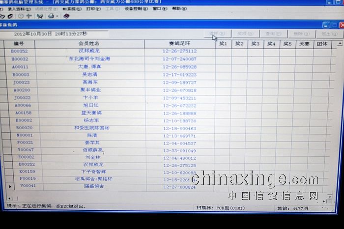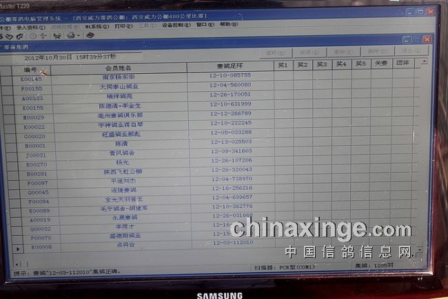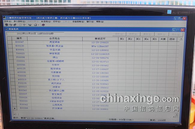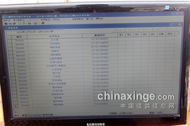 西安市信鸽协会副秘书长兼办公室主任李小刚正在核对赛鸽信息