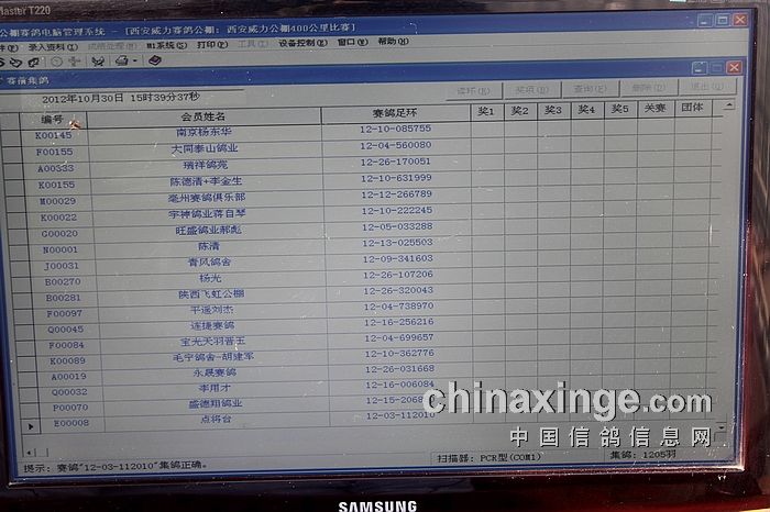 截止2012年10月30日下午15点40分已经扫描入笼1207羽参赛鸽