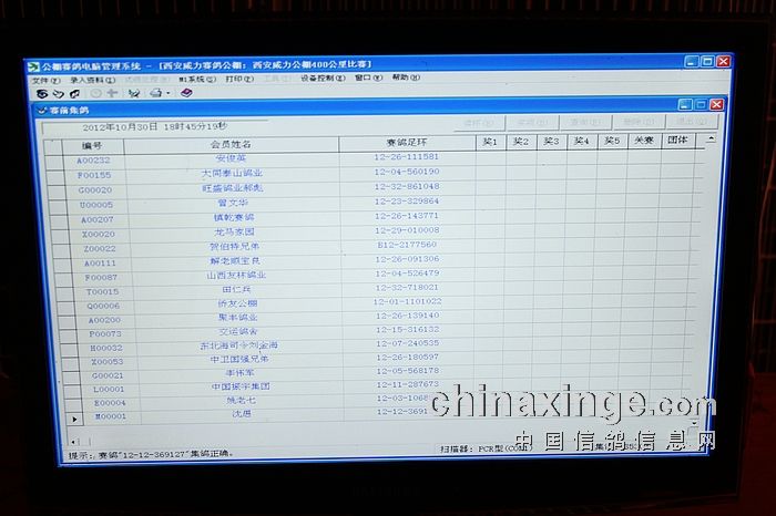 西安市信鸽协会副裁判长张东辉正在核对赛鸽信息