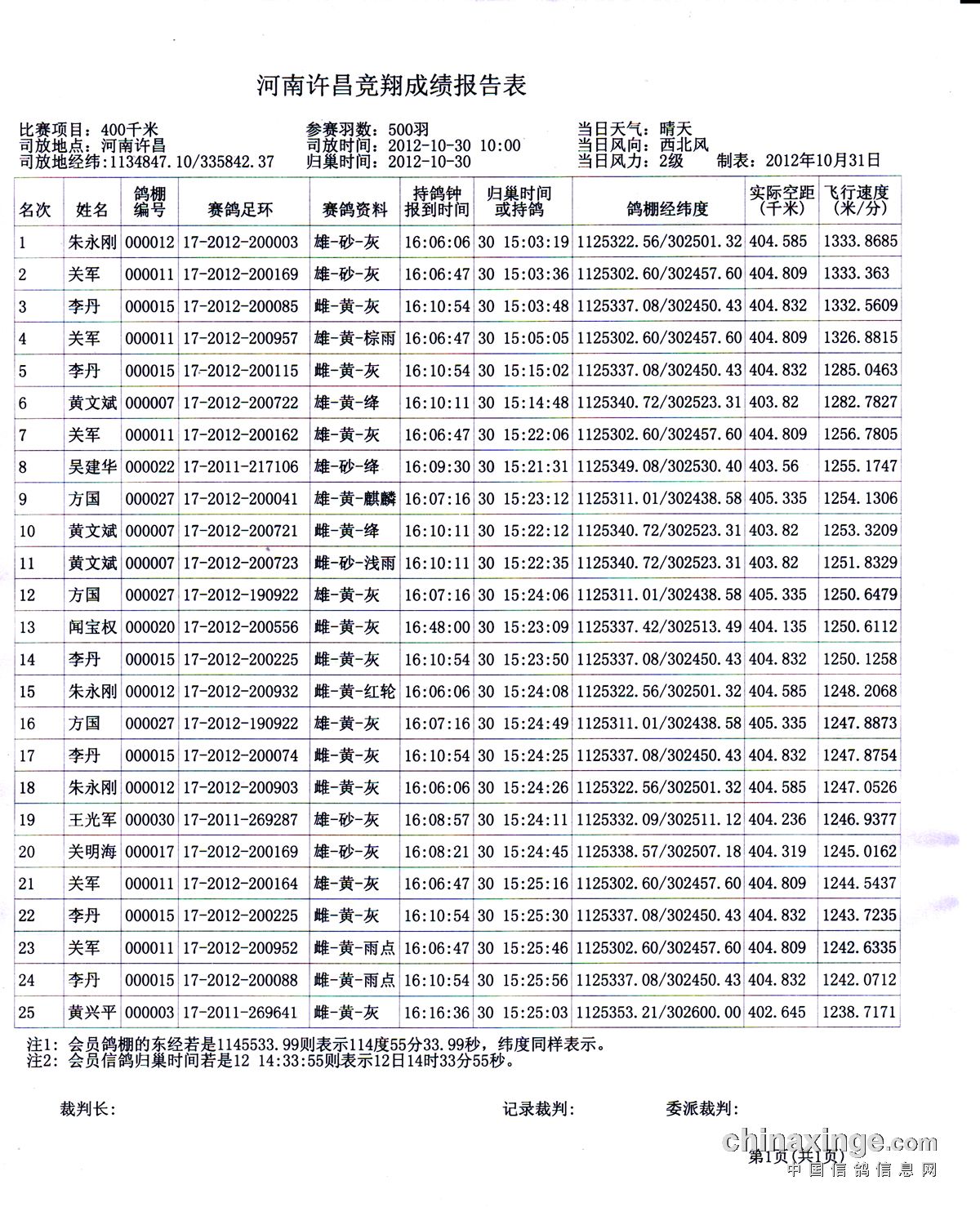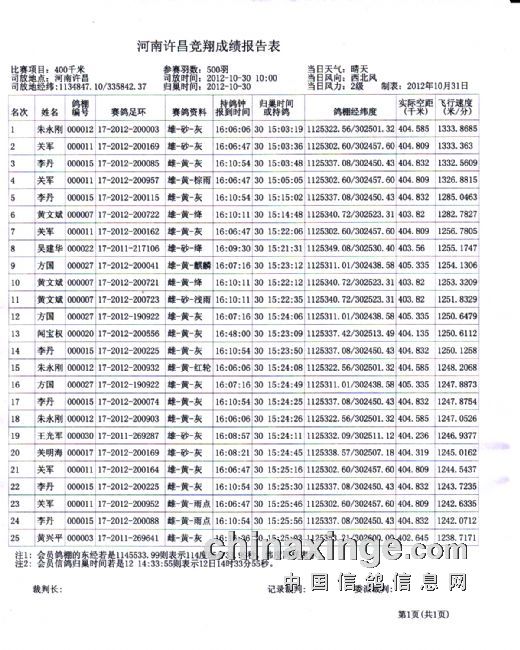 2012秋季许昌站成绩