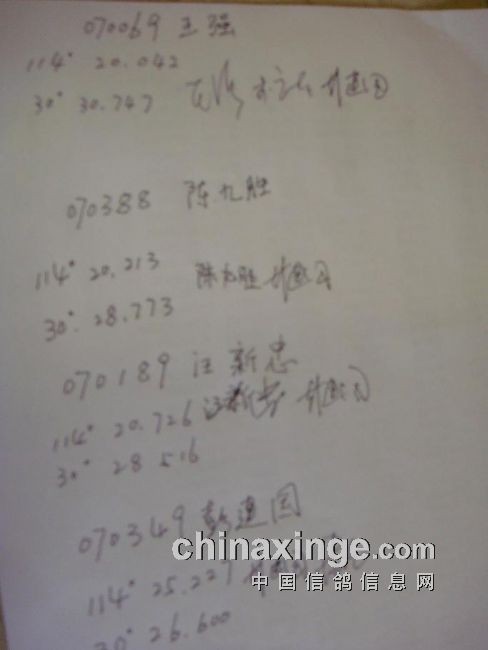 洪山区信鸽协会10月28日510公里原阳竞赛优胜鸽验棚坐标