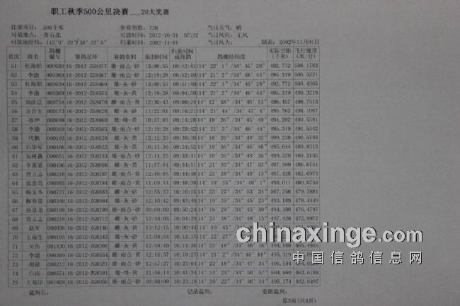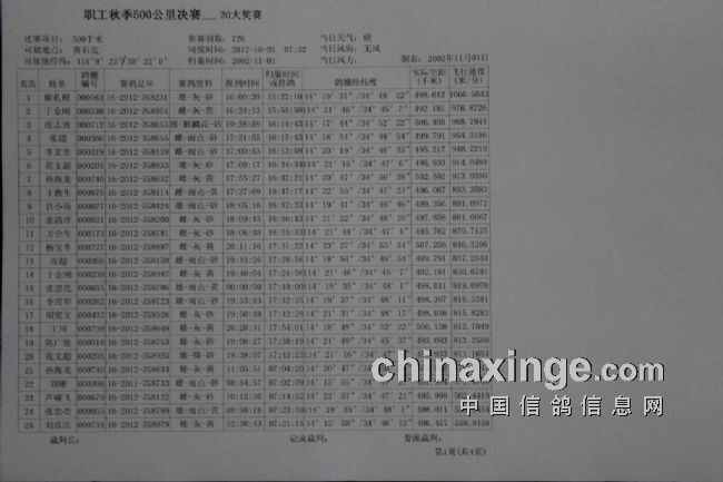 经核对,核对前20元大奖赛21名刘东,信鸽足环号12-ZG9211为60元大奖赛,更正后其60元大奖赛名次为17名