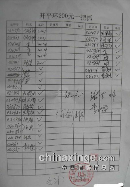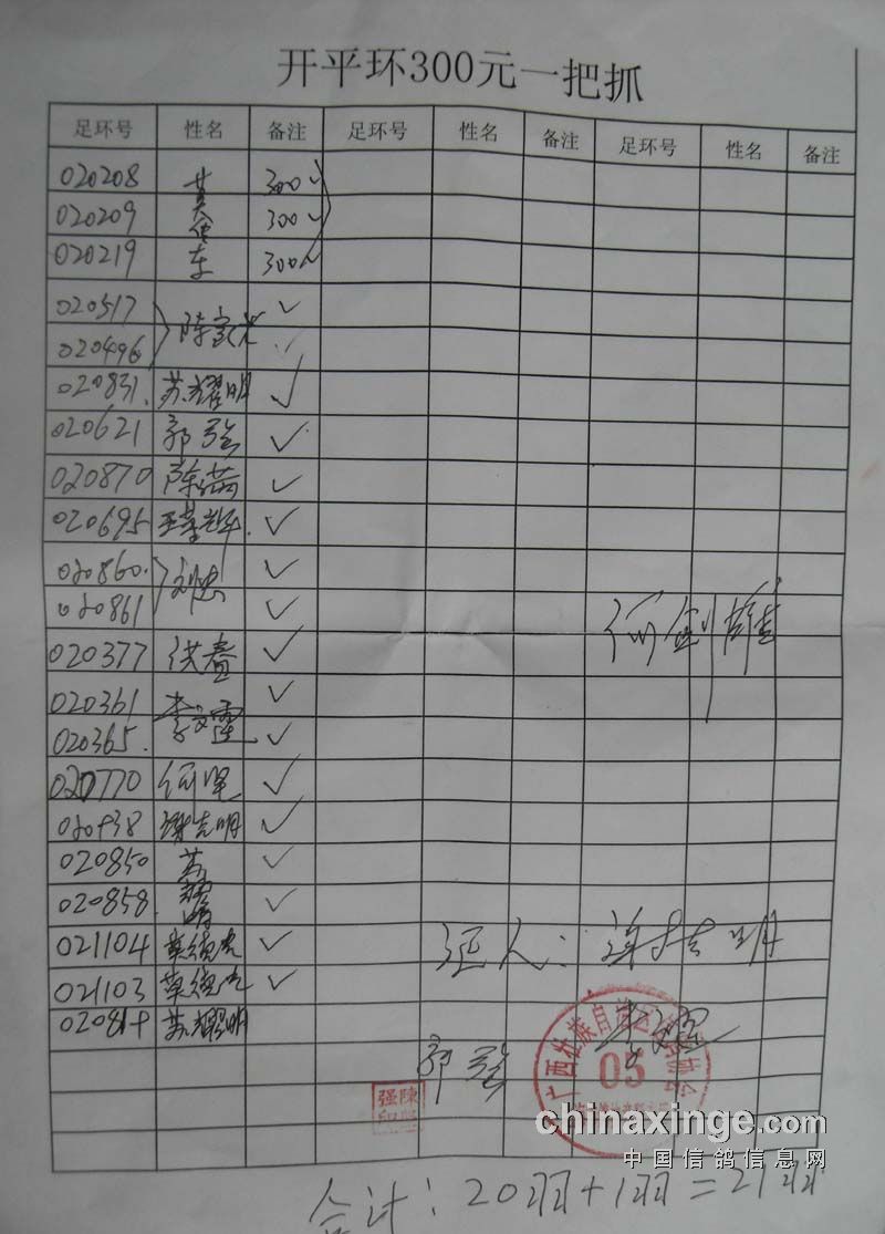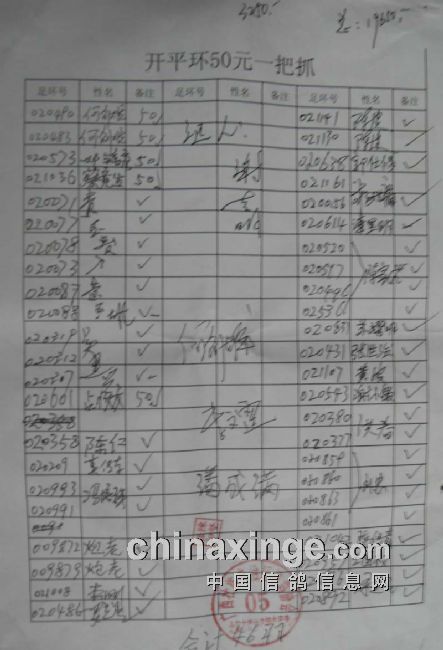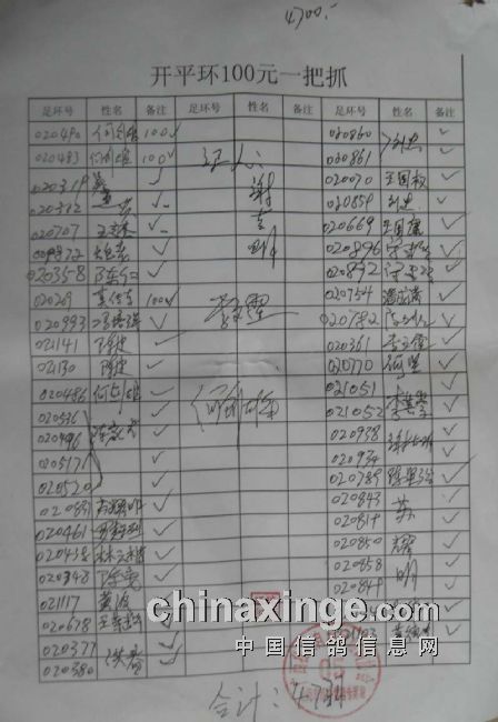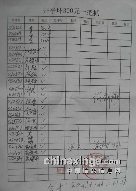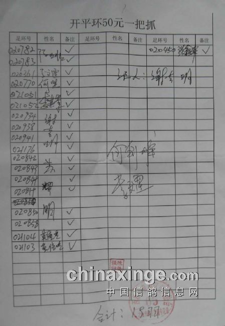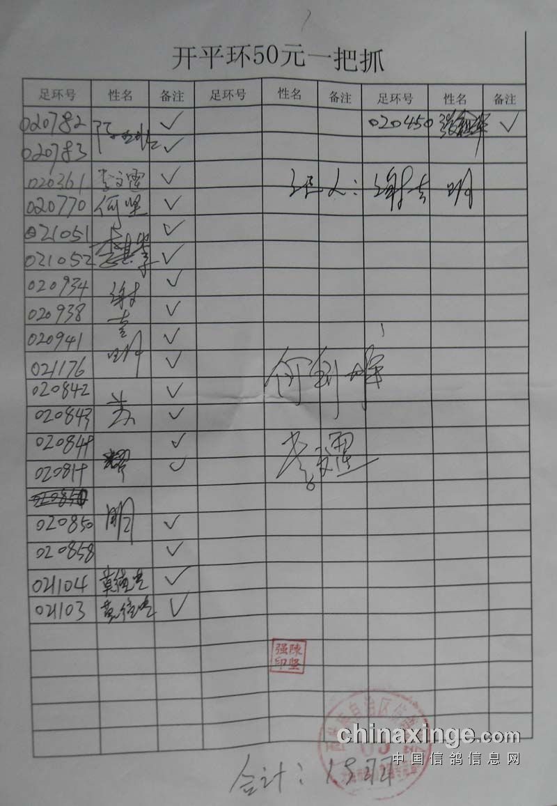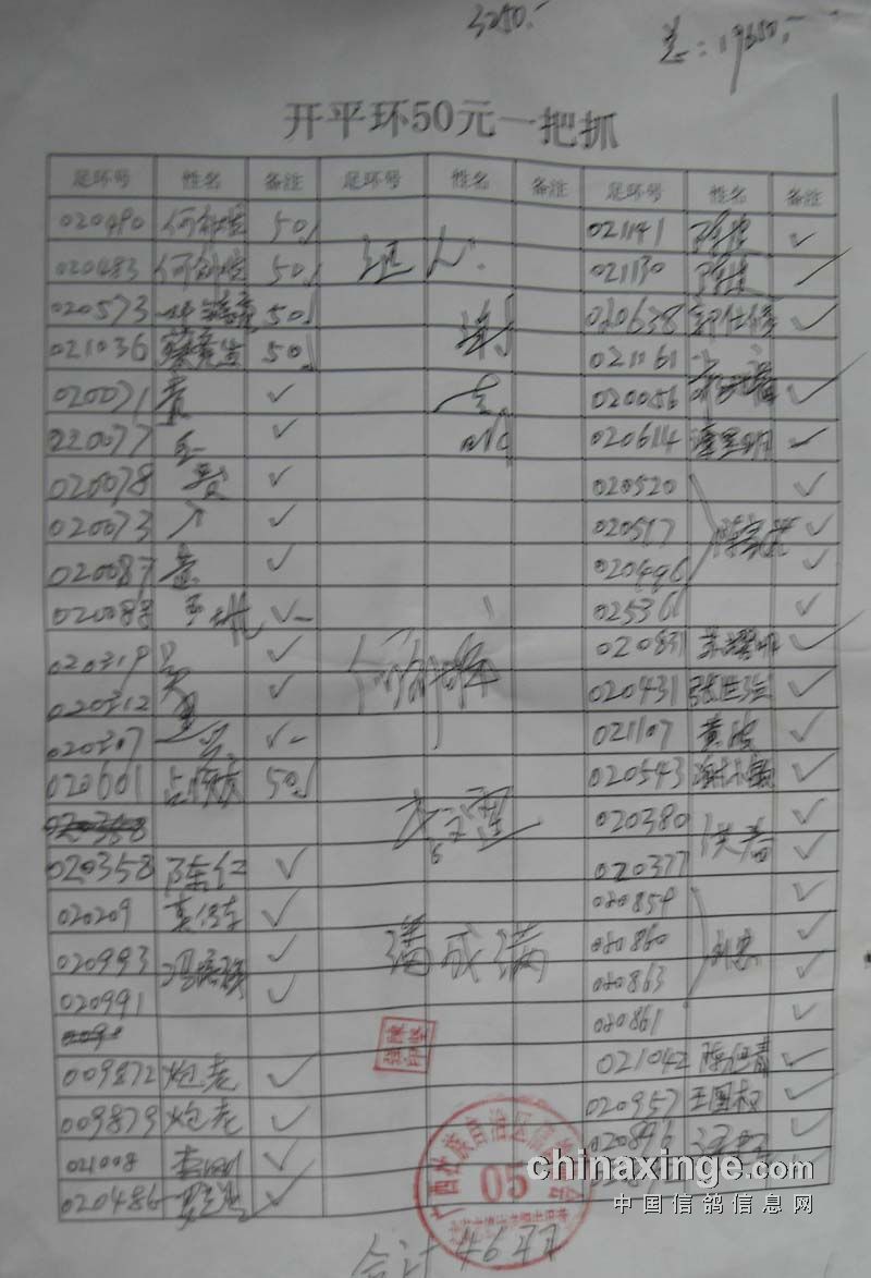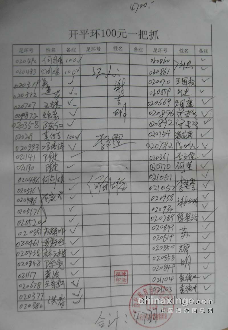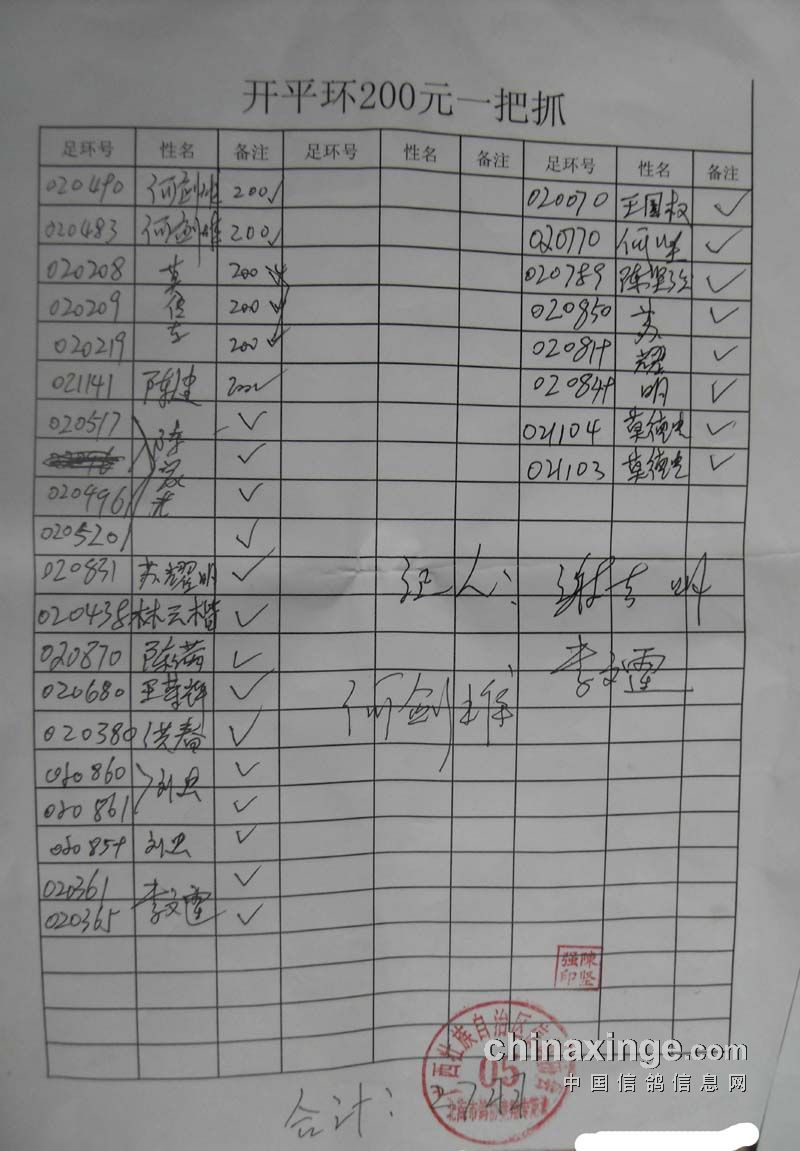 广西北海市信鸽协会2012年下半年百日赛指定鸽名单