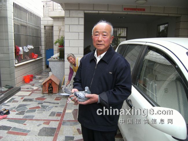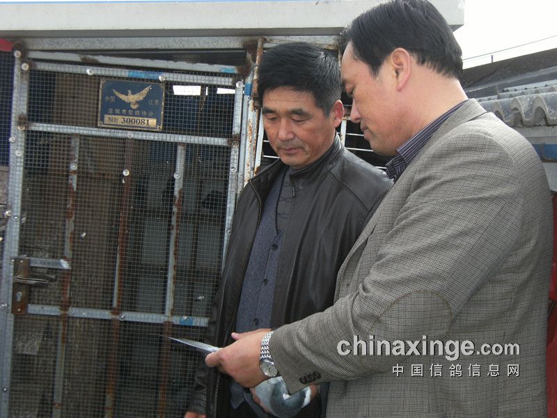 大丰信鸽协会常务主席彭江(左)和裁判沈华(右)在查验暗章