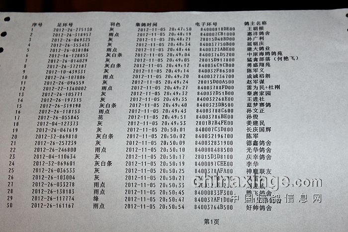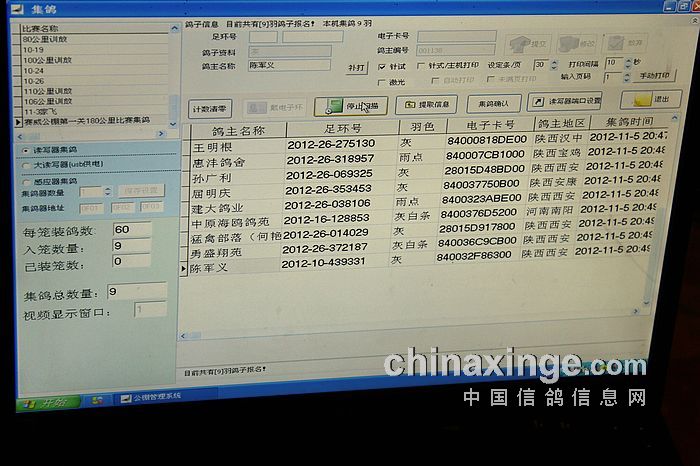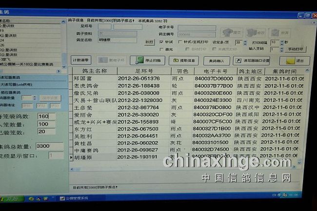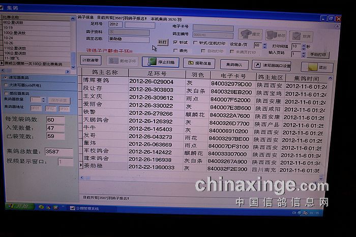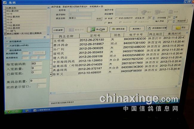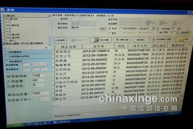 截止2012年11月5日晚22点25分已经扫描入笼1322羽参赛鸽