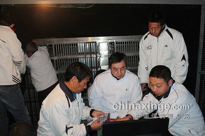 西安市信鸽协会副秘书长吴军、副秘书长兼办公室主任李小刚、西安赛威公棚苏经理