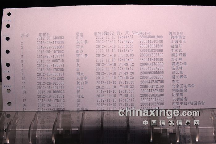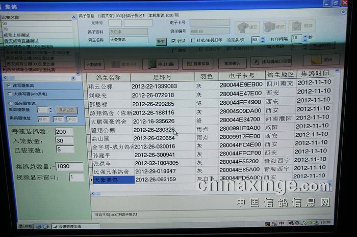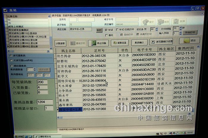 截止2012年11月10日晚18点47分已经扫描入笼1204羽参赛鸽