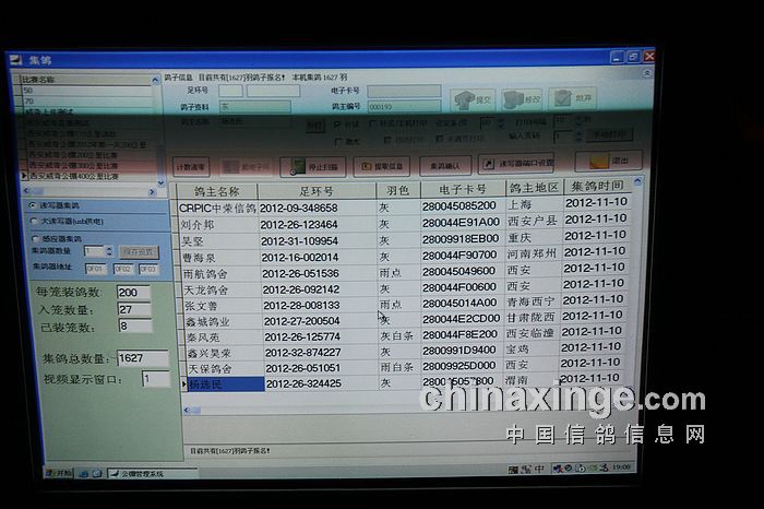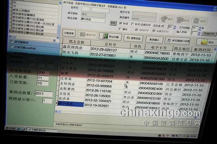 西安威奇赛鸽公棚2012年秋第三关400公里比赛集鸽于2011年11月10日晚17点40分正式开始