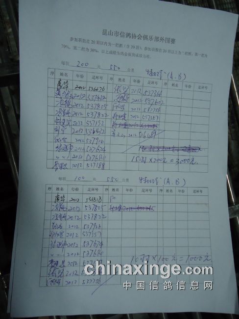 A组号码为537001-538000,B组号码为536001-537000,共集鸽:1706羽,其中A组475羽,B组439羽,精英511羽。