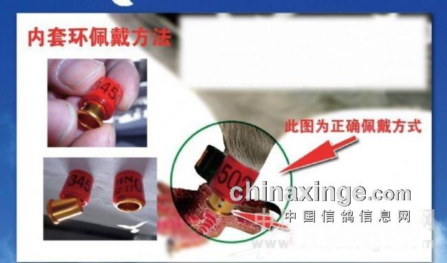 1、和谐杯(灵山、孝感)双关大奖赛、每枚价格 100元。固定号段,限售环1000枚、须佩戴发放的2013年足环及本赛事专用金属内套环正副环佩戴必须一致;(特别提示:金属内套环与2013年全国统一足环必须佩戴在赛鸽的同一只脚上。戴环顺序为,先戴上统一环接着套上金属内套环),凡未按要求佩戴或没有佩戴金属内套环鸽,无参赛资格。