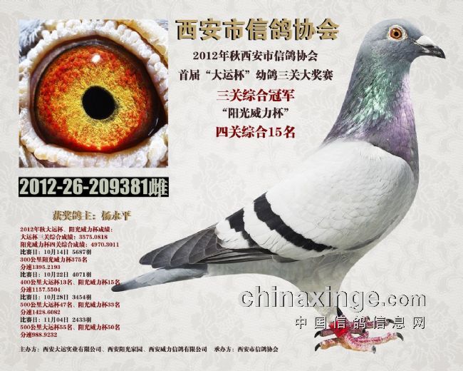 西安大运杯、阳光威力杯优胜鸽欣赏
