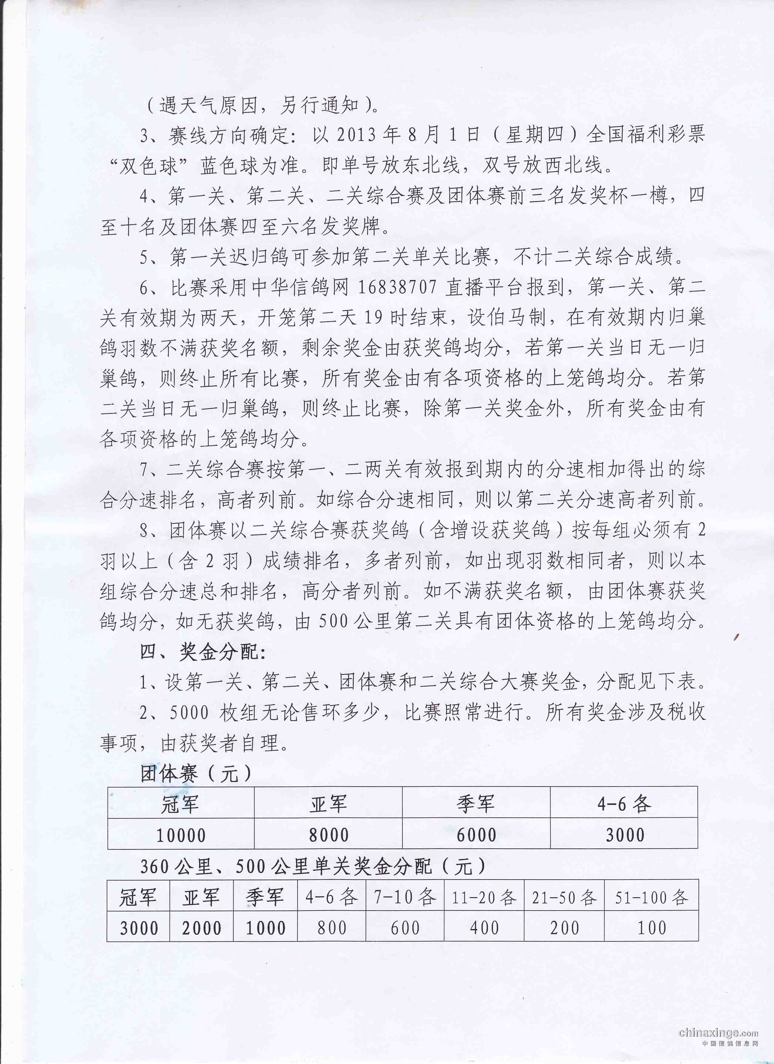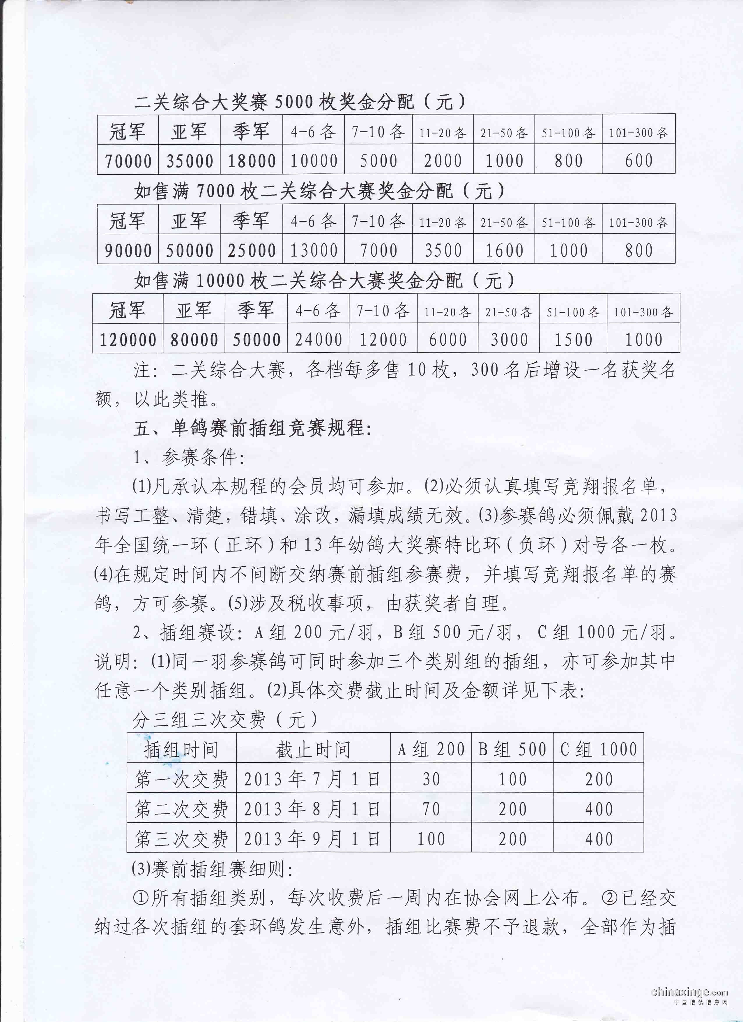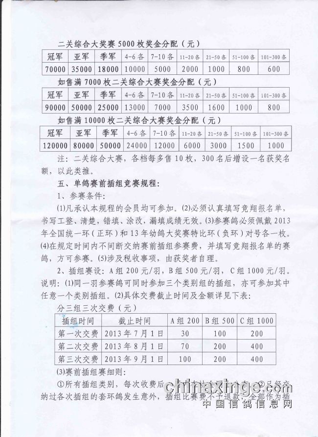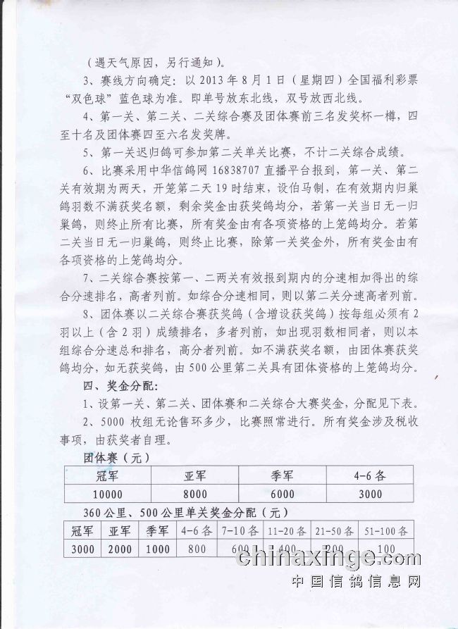 南昌市信鸽协会2013年秋幼鸽特比环“二关综合大奖赛”竞翔规程