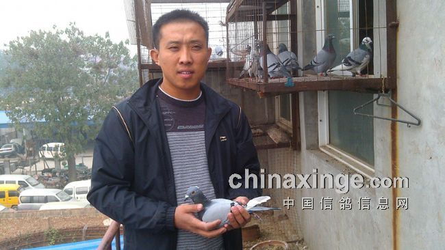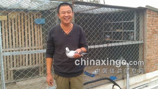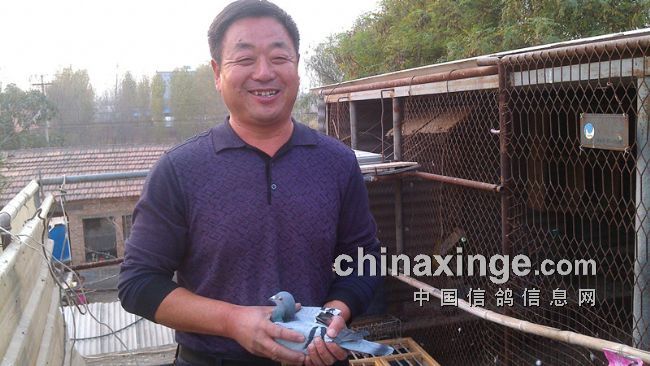 红鼎杯幼鸽赛冠军得主赵庆海与冠军鸽