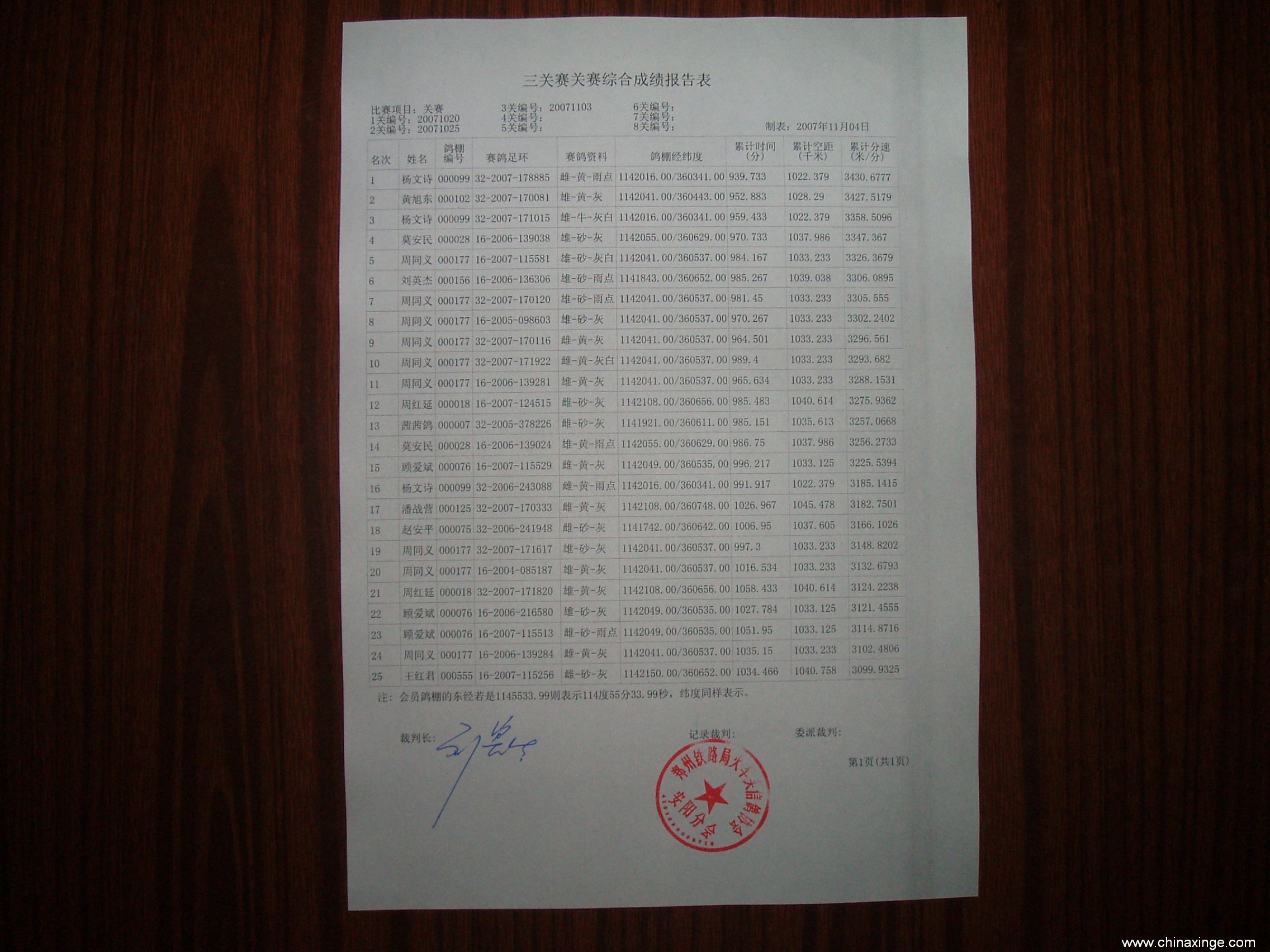安阳铁路信鸽协会07年秋三关赛1-25名
