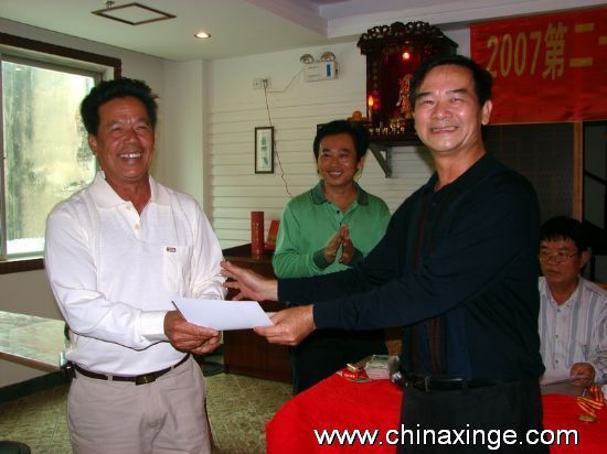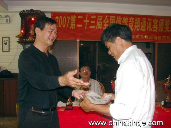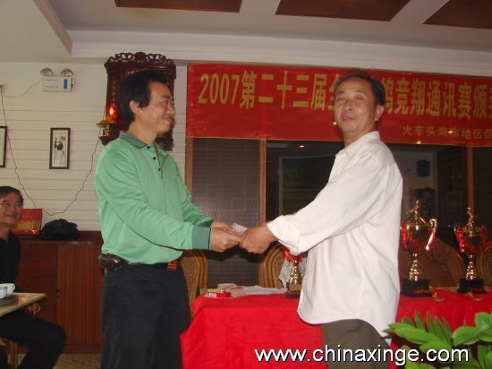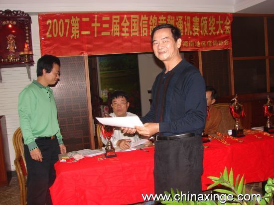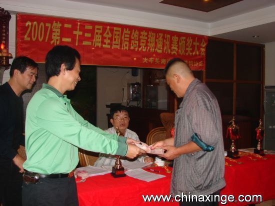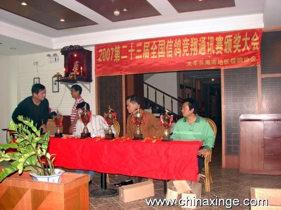 07年第二十三届全国信鸽通讯赛火车头海南地区鸽协颁奖现场