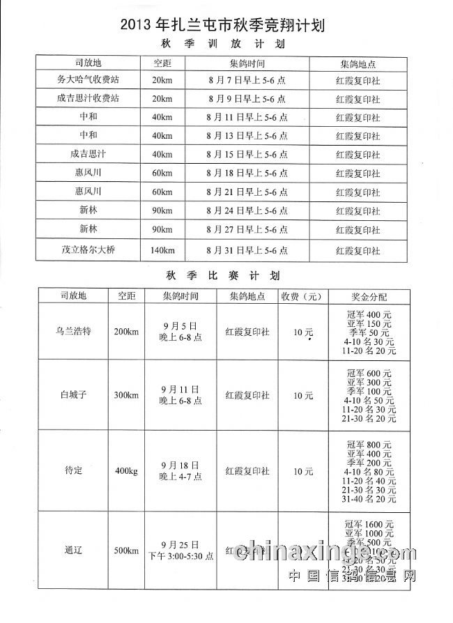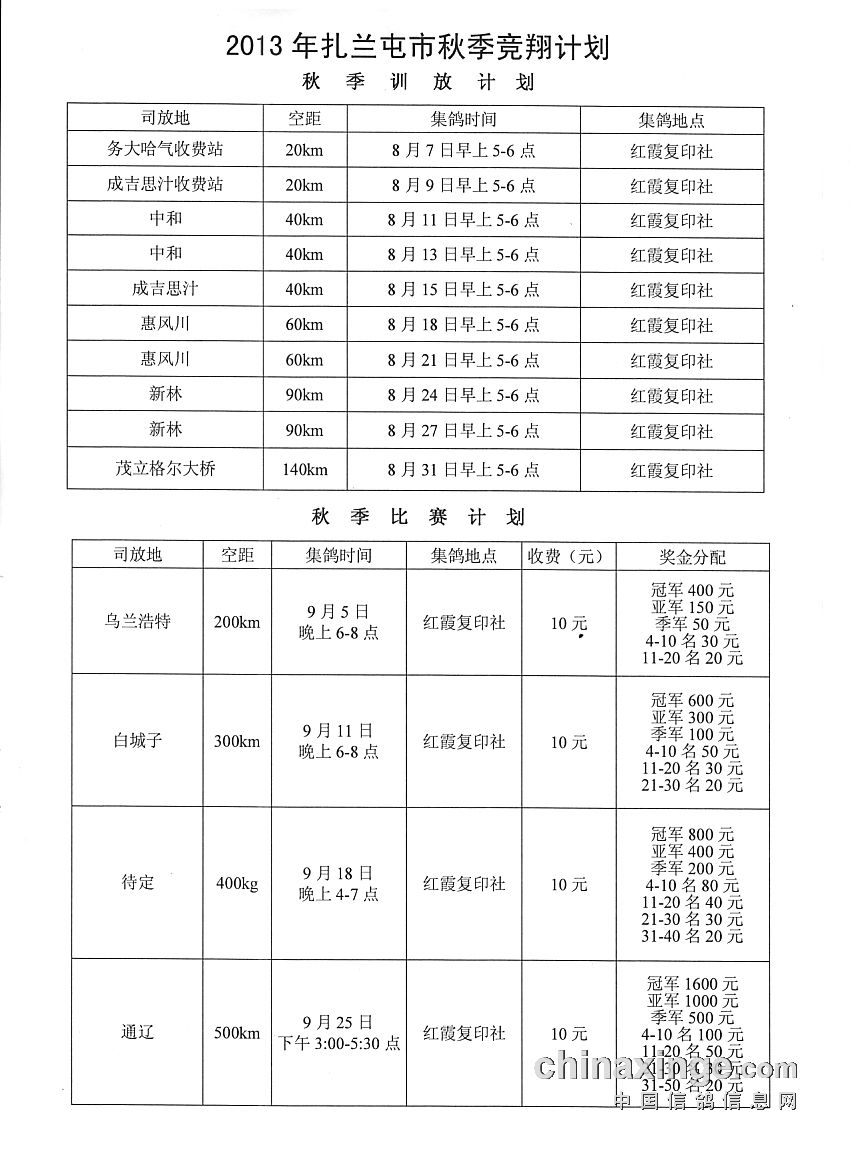 2024年扎赉诺尔区信鸽协会春季 “奋飞杯”训放计划表