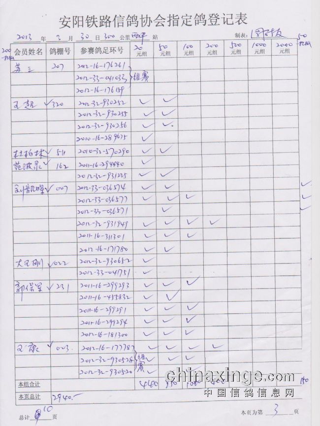 如有异议,请在见鸽之前向鸽会提出,尽快改正。如无异议,此明细见鸽之后自动生效,不再更改。联系电话:15637261022