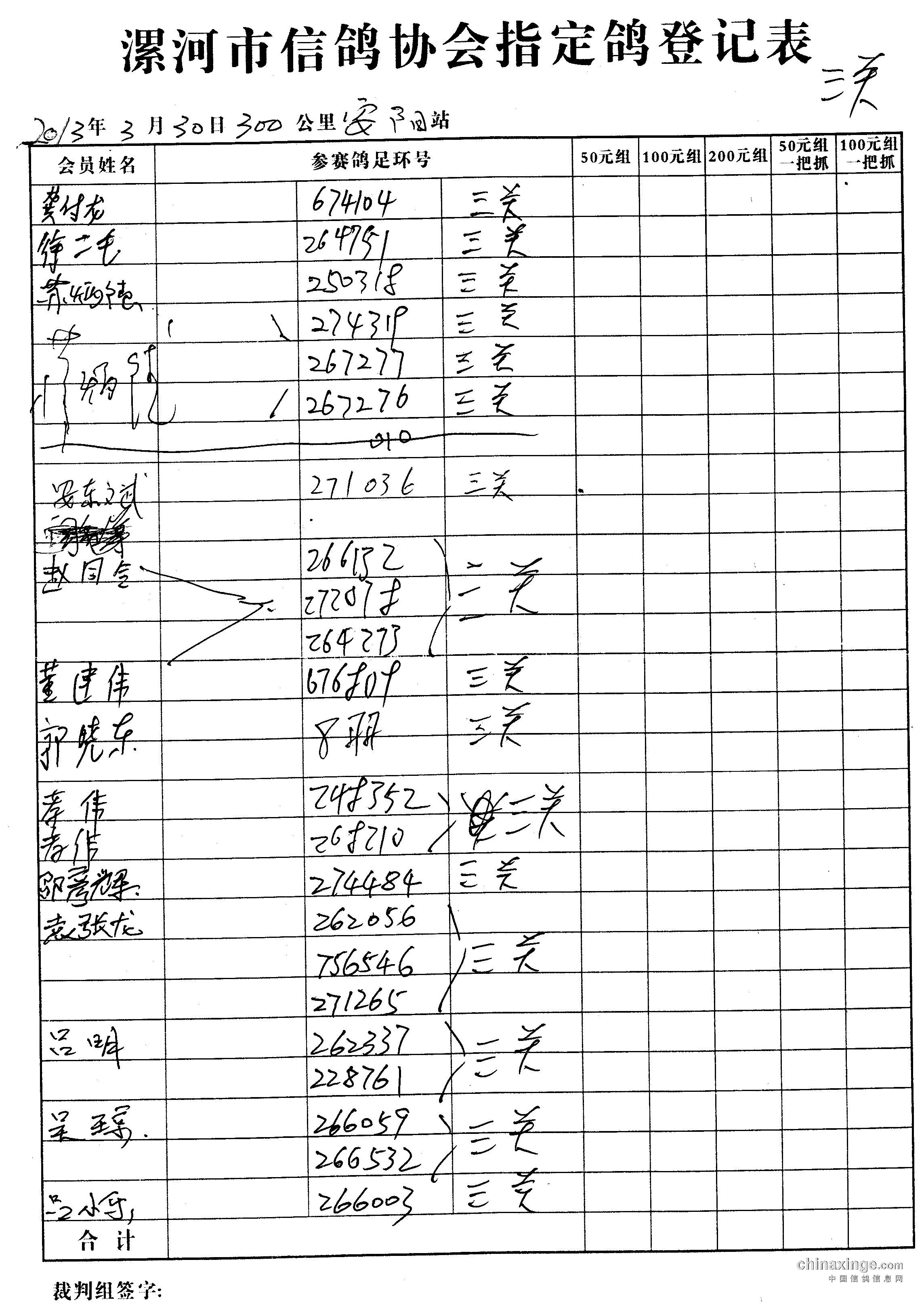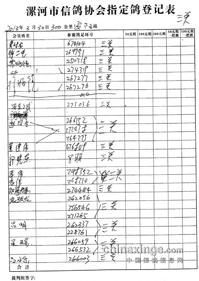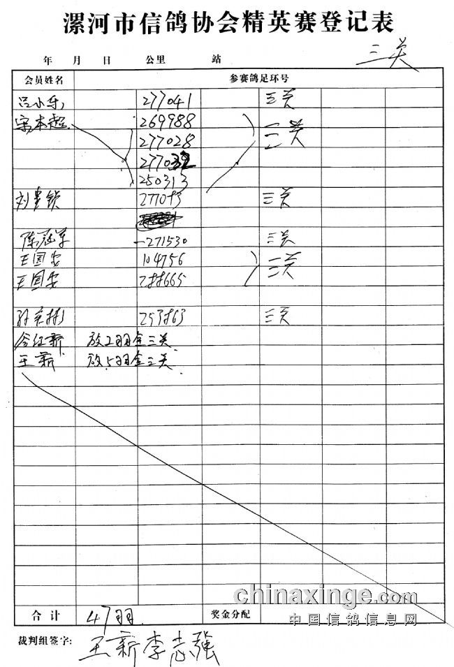 漯河市信鸽协会2019年秋季420公里内丘上笼清单