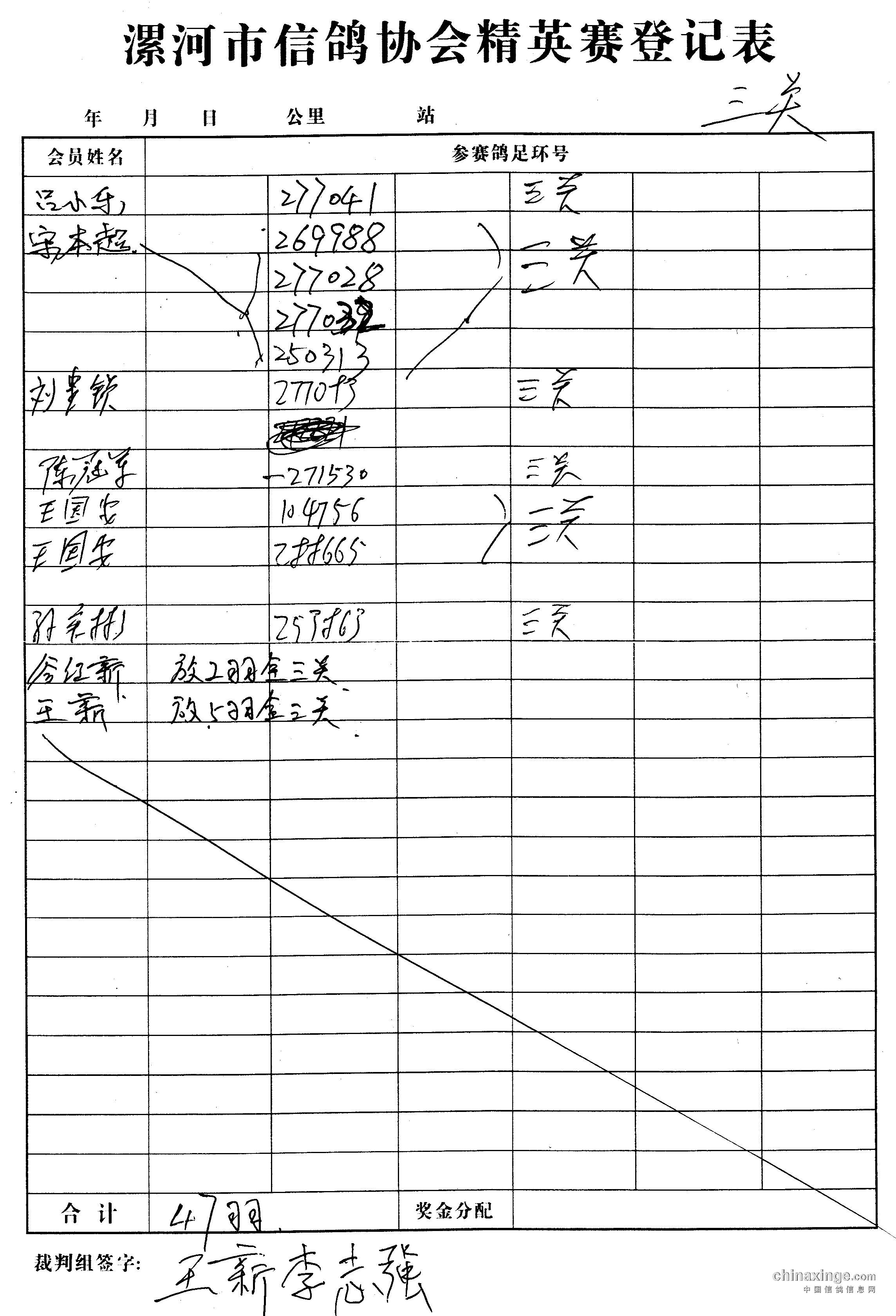 漯河市信鸽协会2019年秋季200公里新乡资格赛上笼清单