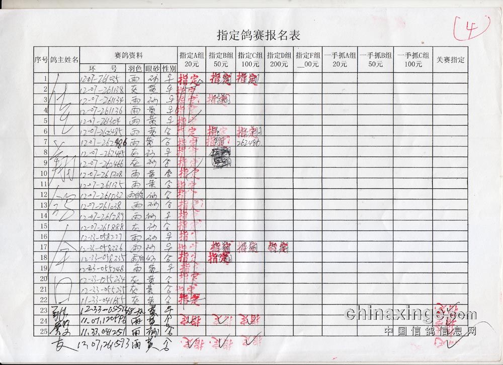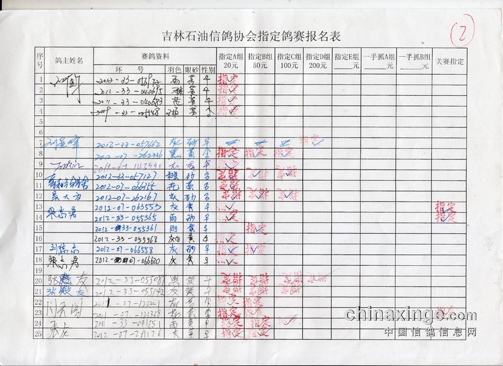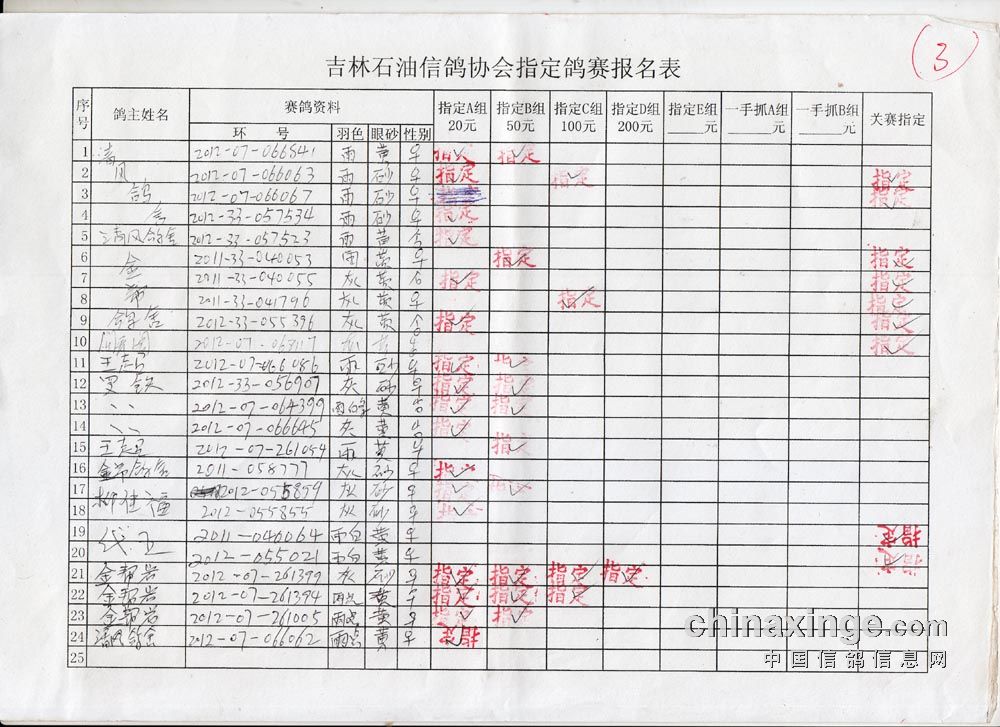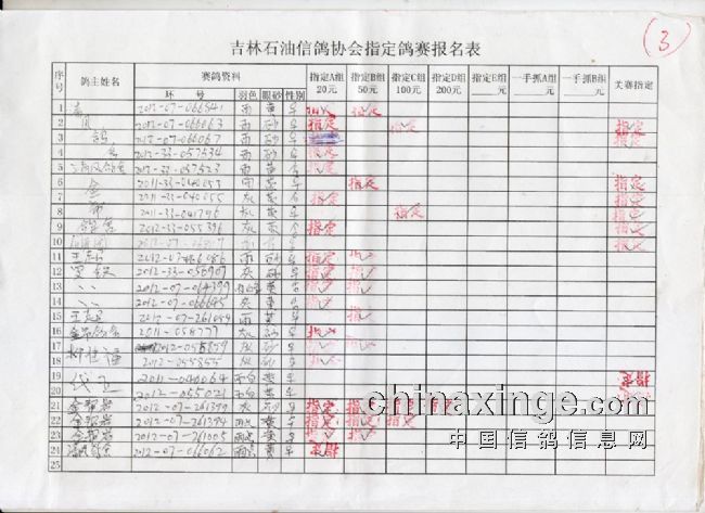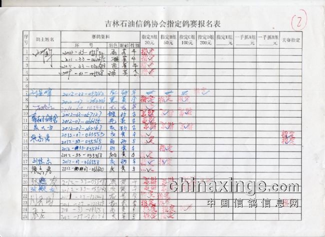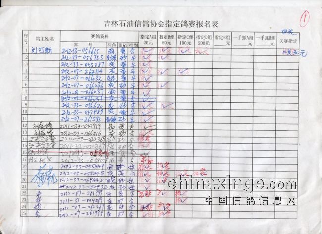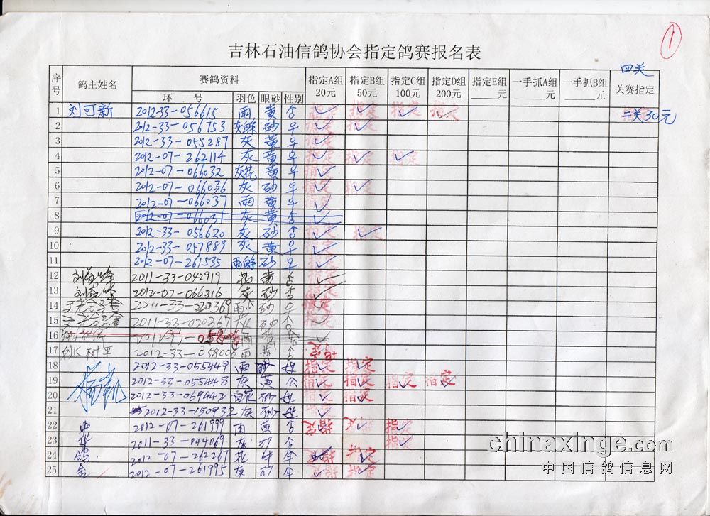 吉油鸽会2013年春350公里扎鲁特旗站指定鸽原始单据