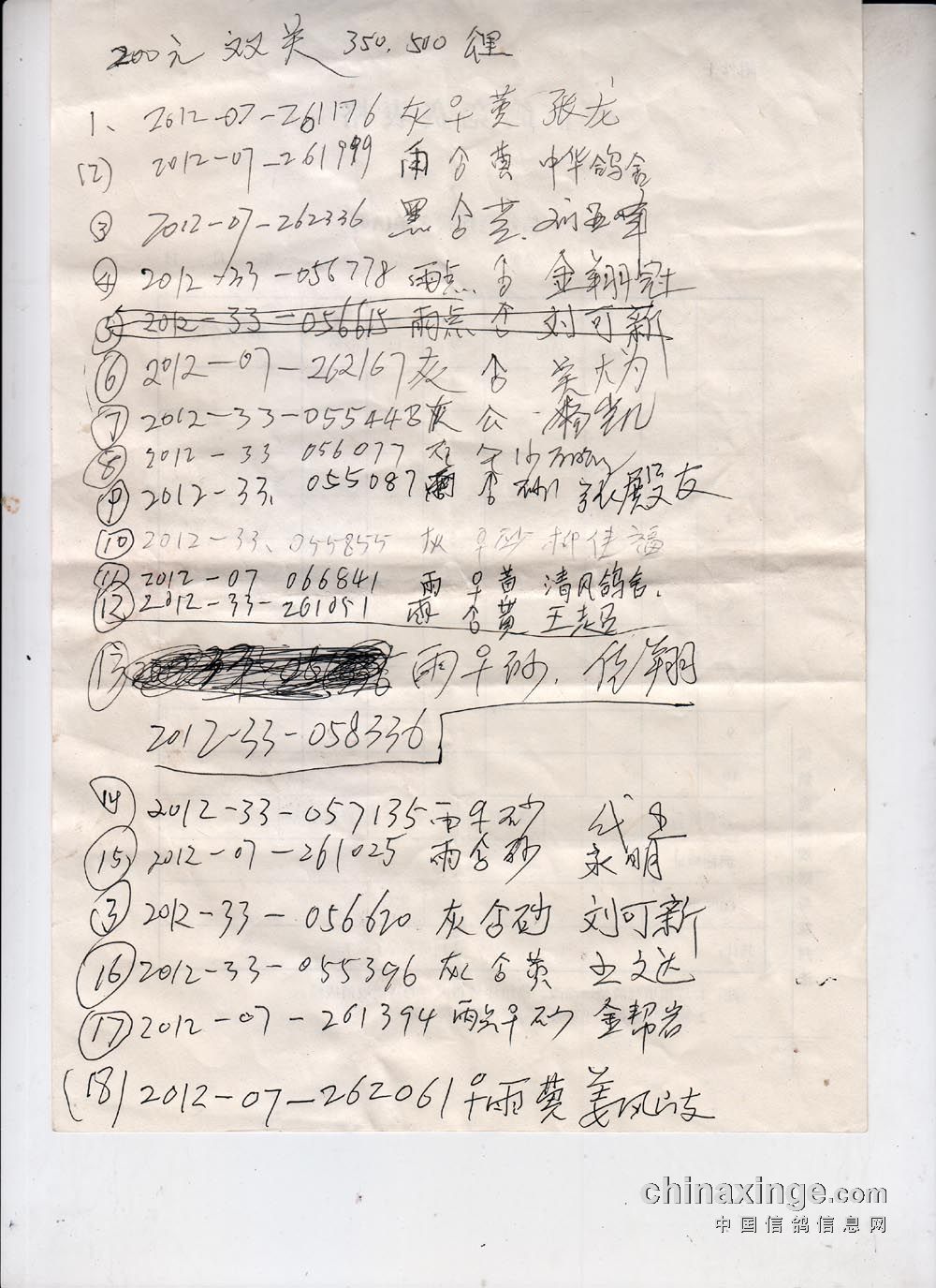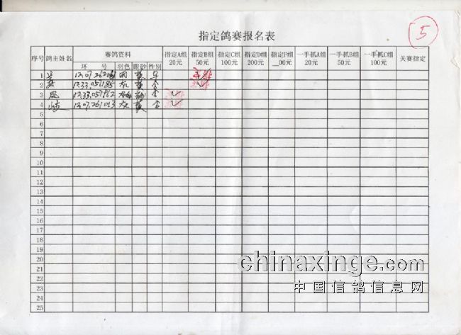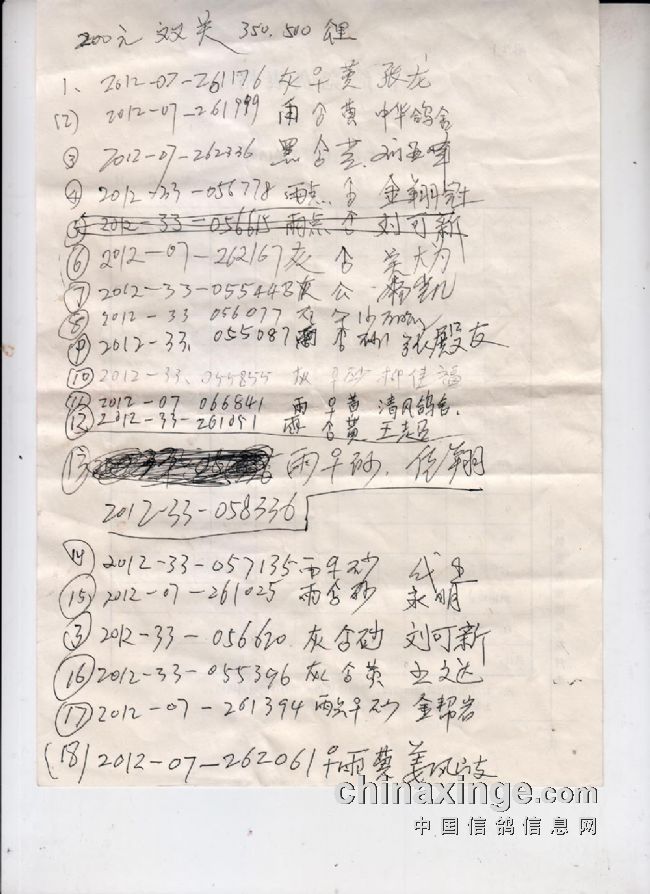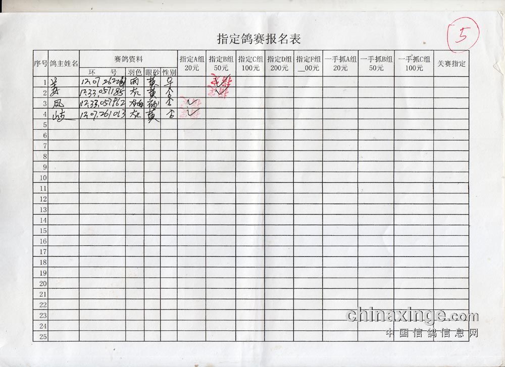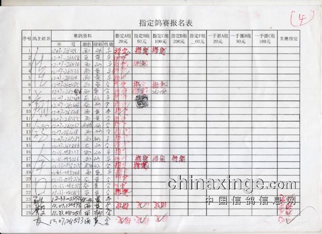 吉油鸽会2013年春350公里扎鲁特旗站指定鸽原始单据