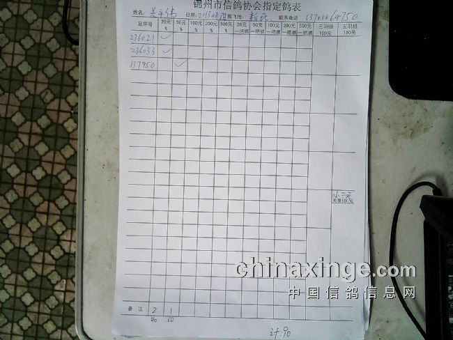 平翔信鸽俱乐部2021年秋季特比环截止1月4日售环2150枚