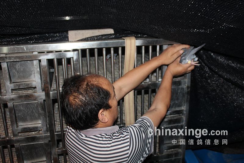 鑫宝公棚工作人员正在做集鸽前的准备工作