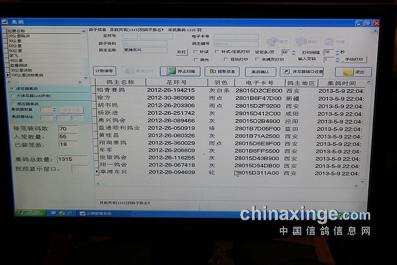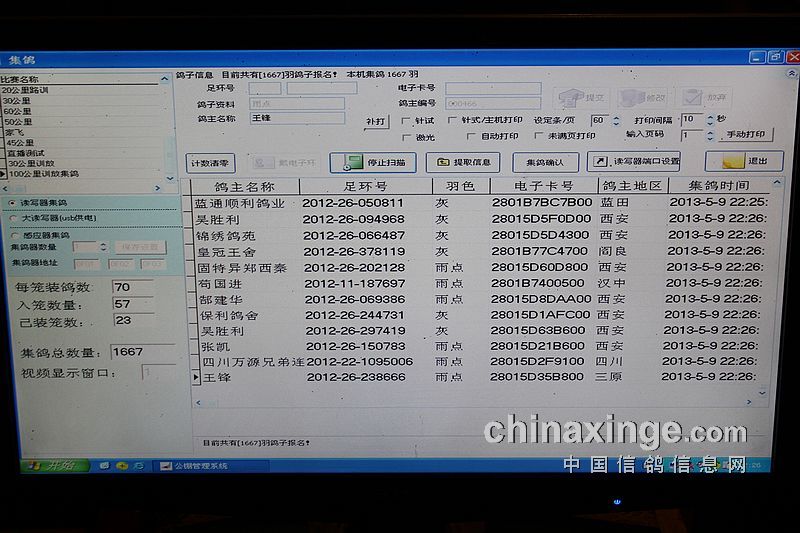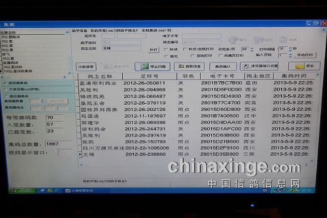 截止5月9日晚22点26分已经扫描入笼1667羽参赛鸽