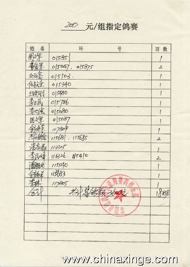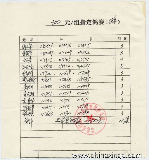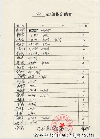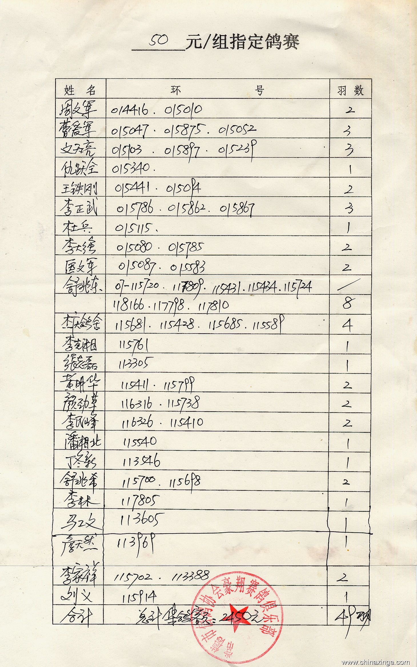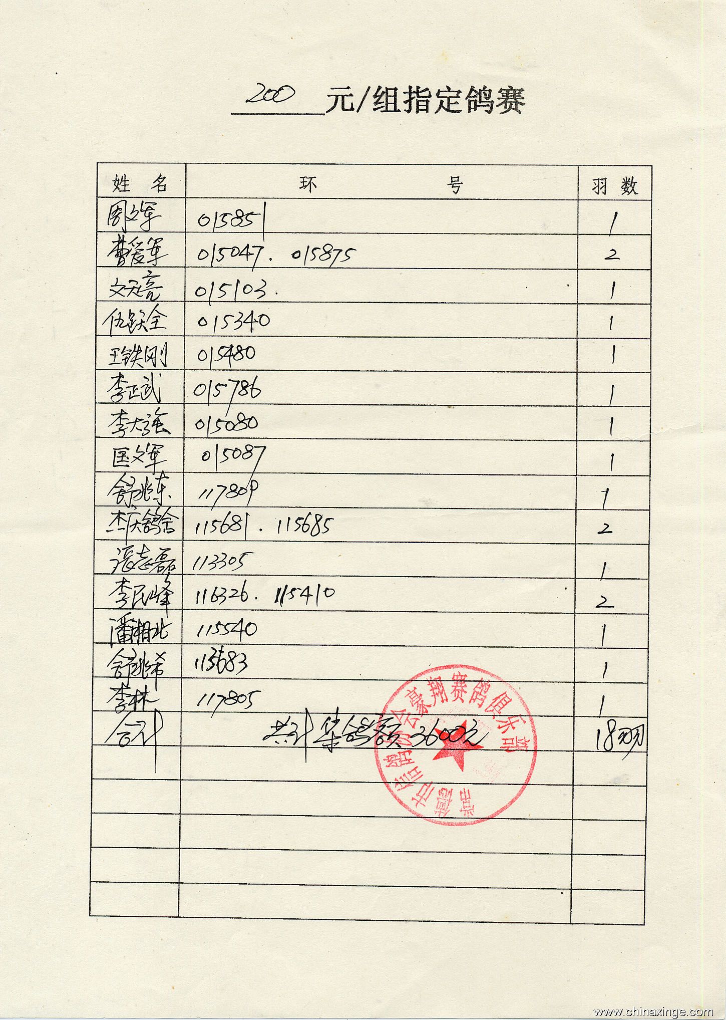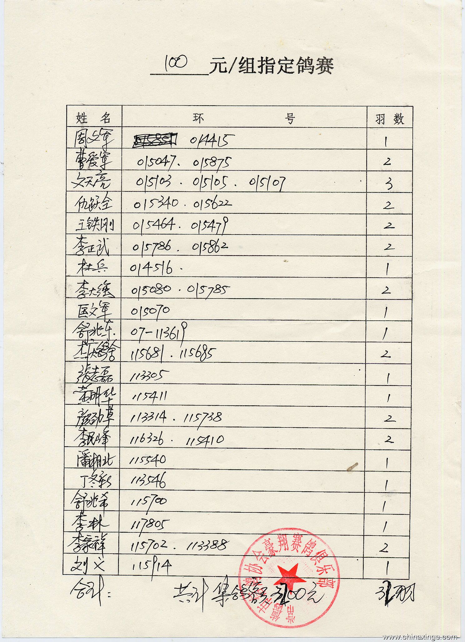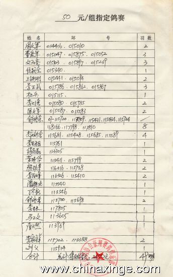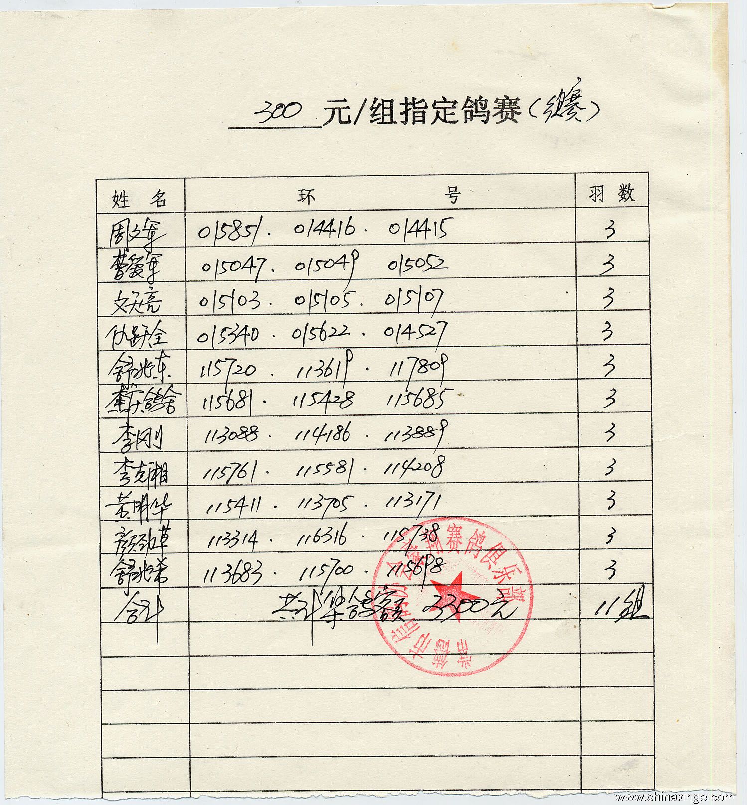 2017年湖南省幼鸽暨锦标赛幼鸽成绩
