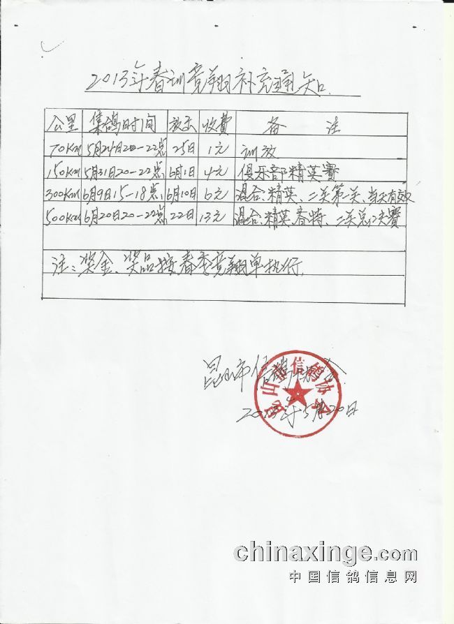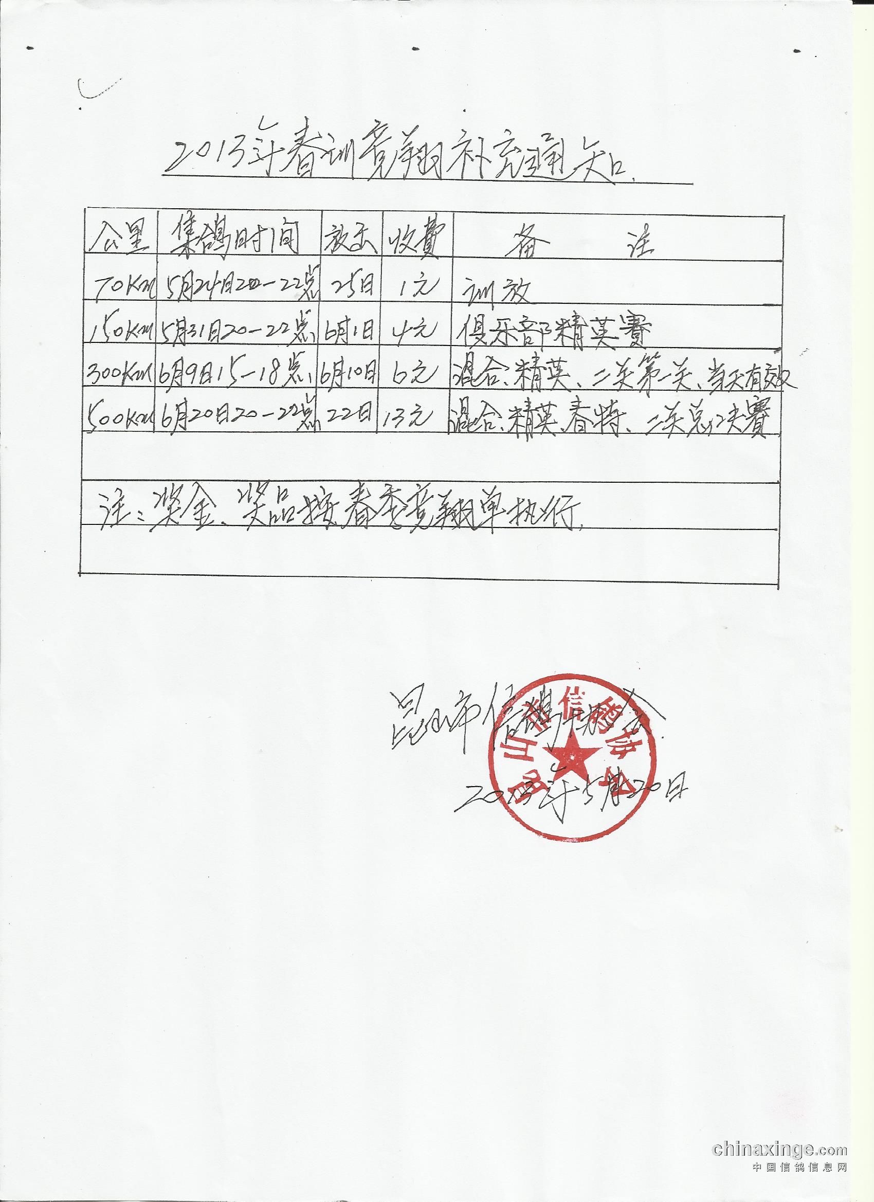 2013年春训竞翔补充通知