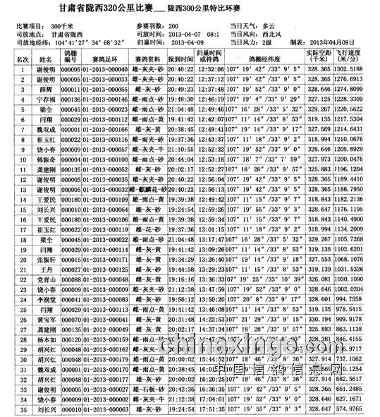 城固信县信鸽协会2020年秋季300元三关成绩明细