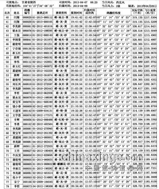 2013年城固鸽协陇西320公里大奖赛成绩(二)