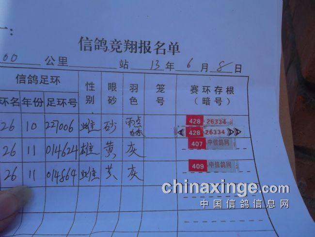 2013年延安市信鸽协会春季第三关甘肃嘉峪关站比赛第一名验棚图片