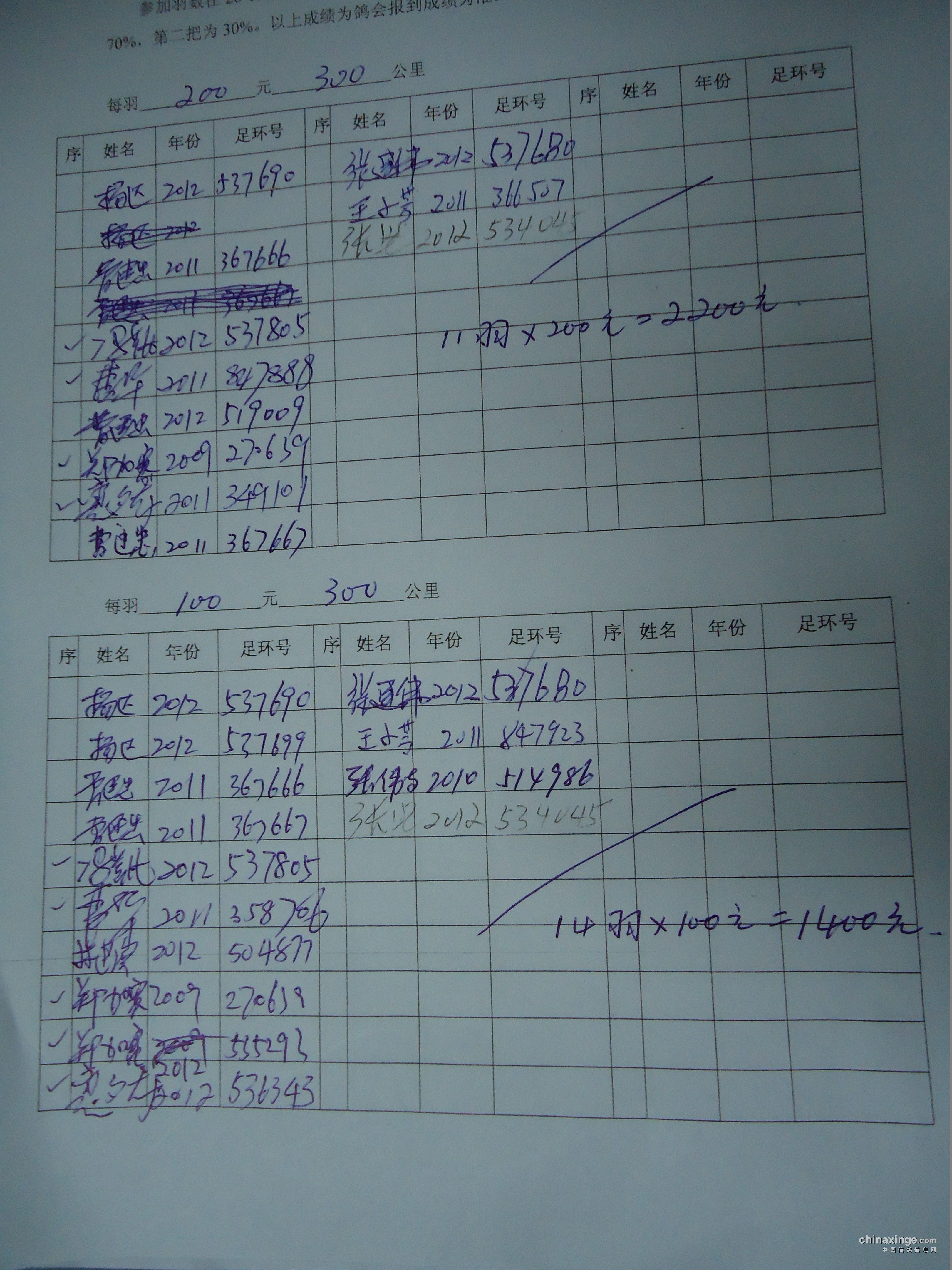 300公里集鸽总羽数806只(其中精英赛304只、 二关赛346只)