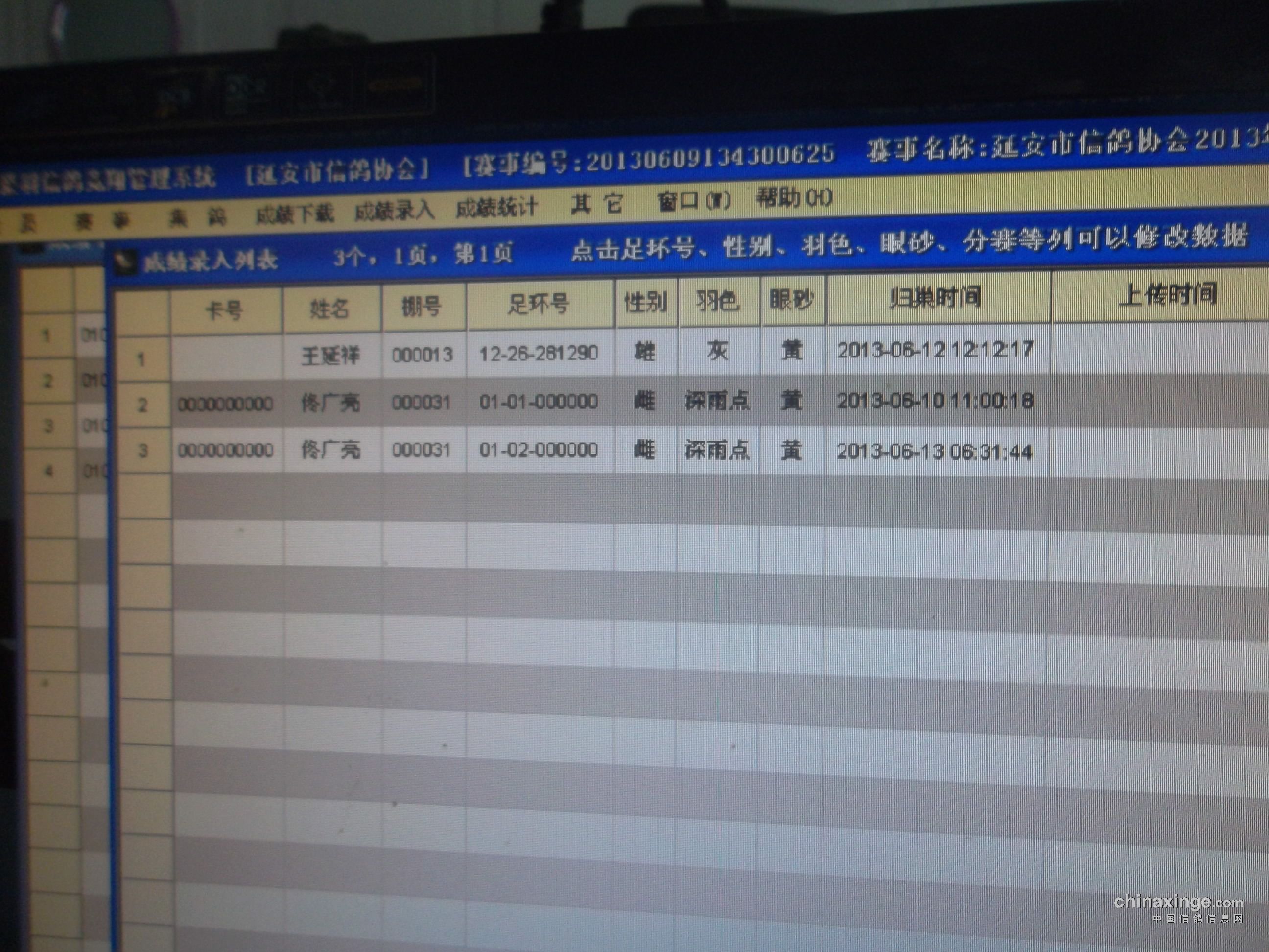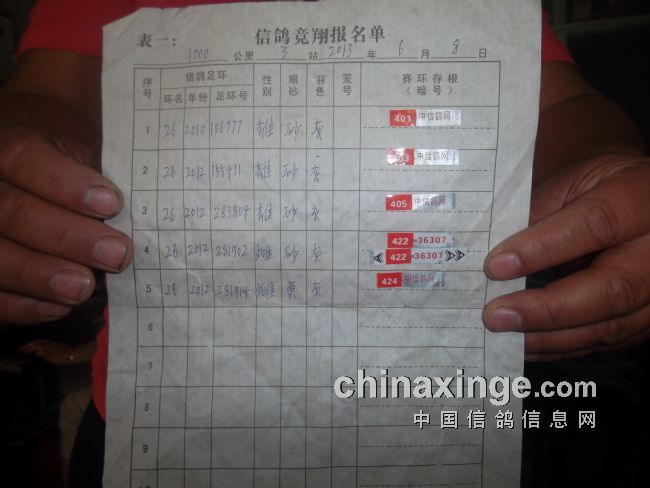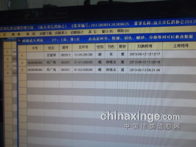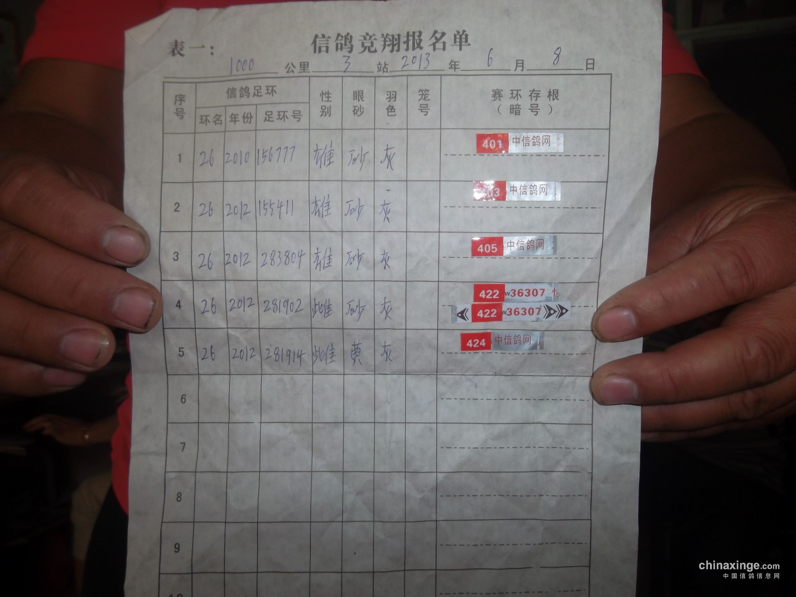 2013年延安市信鸽协会春季第三关甘肃嘉峪关站比赛第六名验鸽报道图片