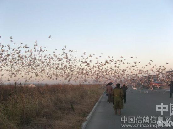 11月2日清晨7:00时,16745羽赛鸽自北京大兴县放飞,万鸽腾飞,遮