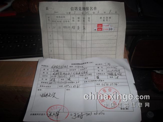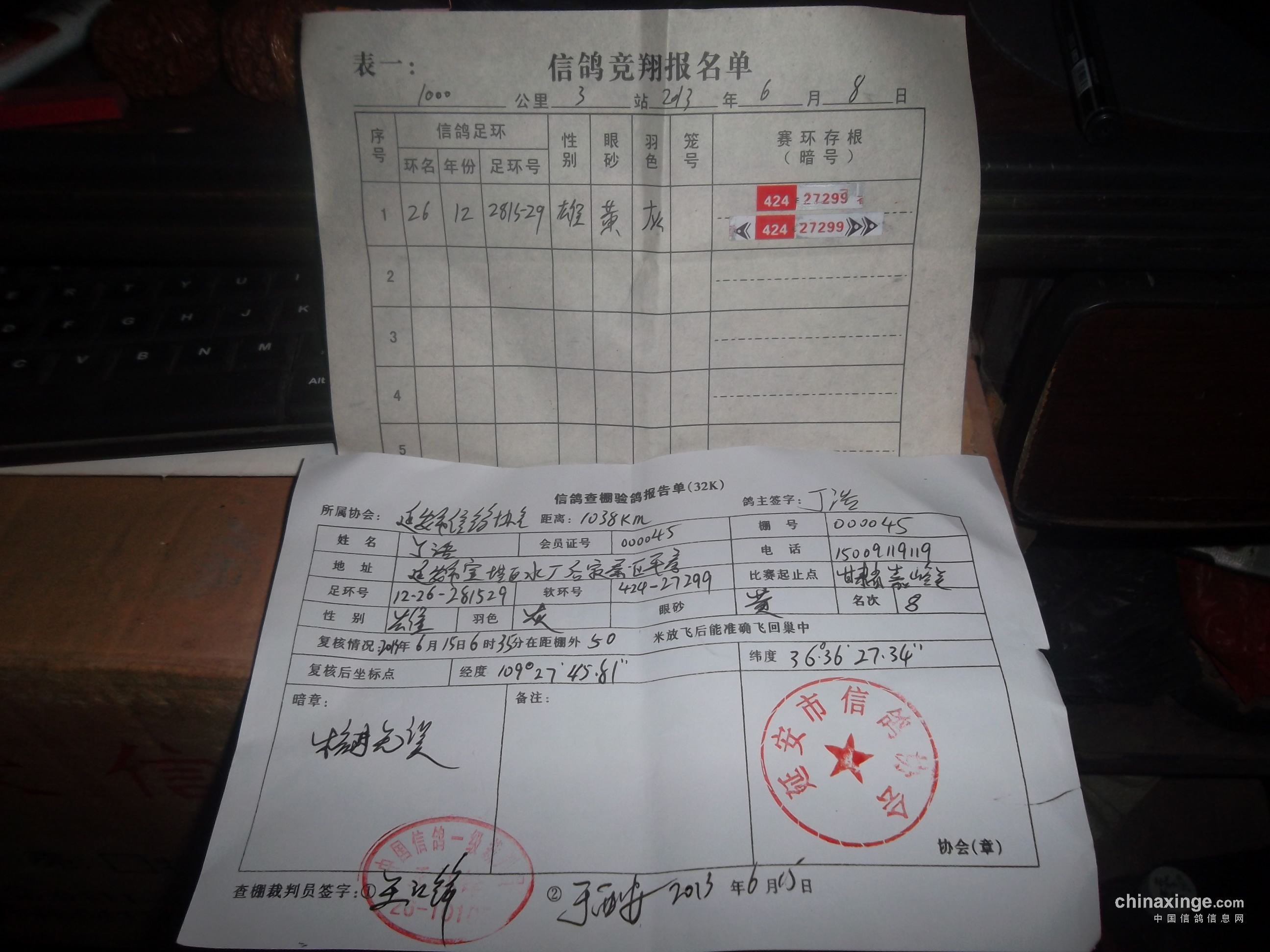 2013年延安市信鸽协会春季第三关甘肃嘉峪关站比赛第八名验棚图片