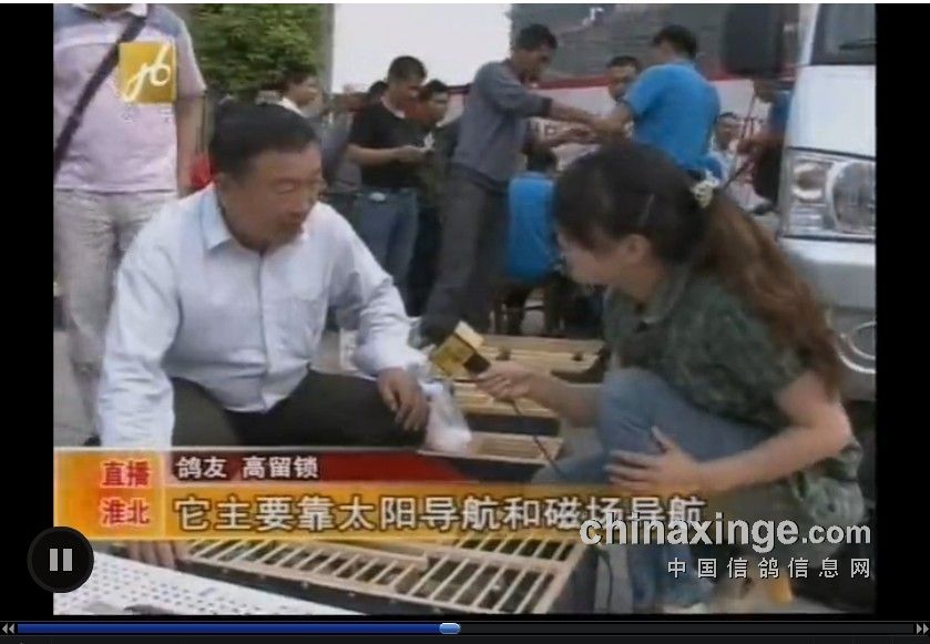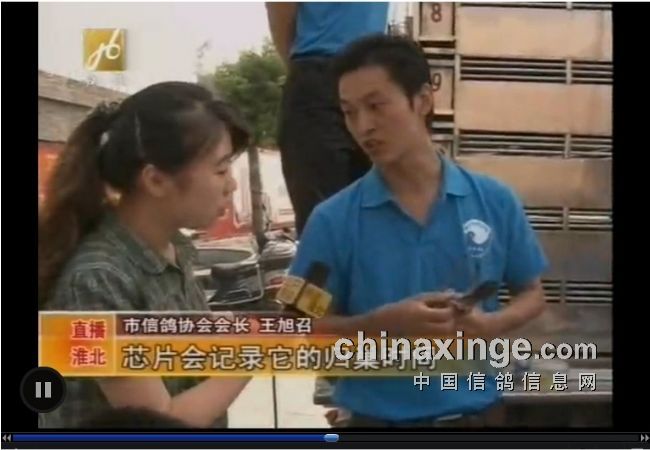 7、淮北电视台记者为市民解说本次赛事的司放地点,真心的期望市民关注信鸽,关注养鸽人!