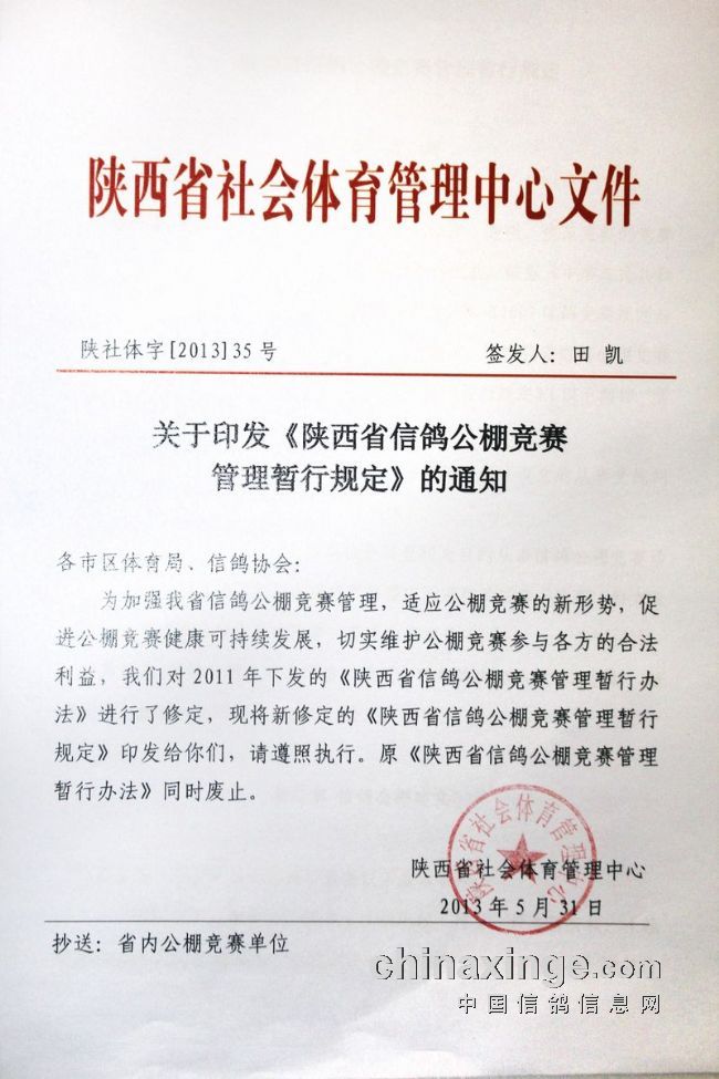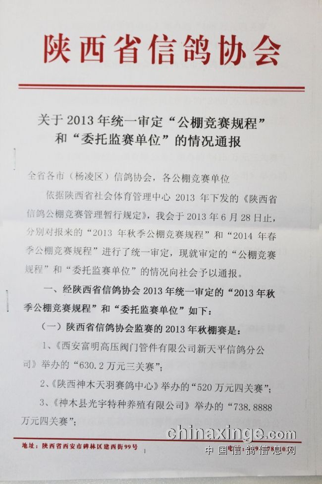 这次会议一是向各公棚竞赛单位下发了陕西省社会体育管理中心2013年《陕西省信鸽公棚竞赛管理暂行规定》的35号文件和陕西省信鸽协会关于2013年统一审定“公棚竞赛规程”和“委托监赛单位”的情况通报。针对《暂行规定》从新修订的内容进行了重点学习,请各棚积极遵照执行。