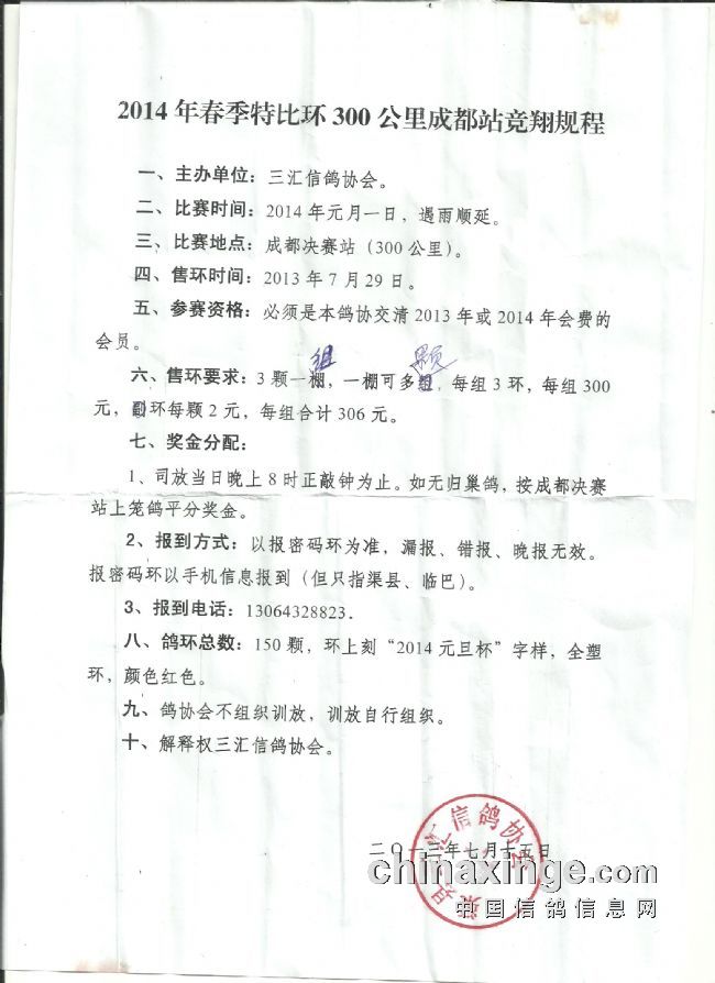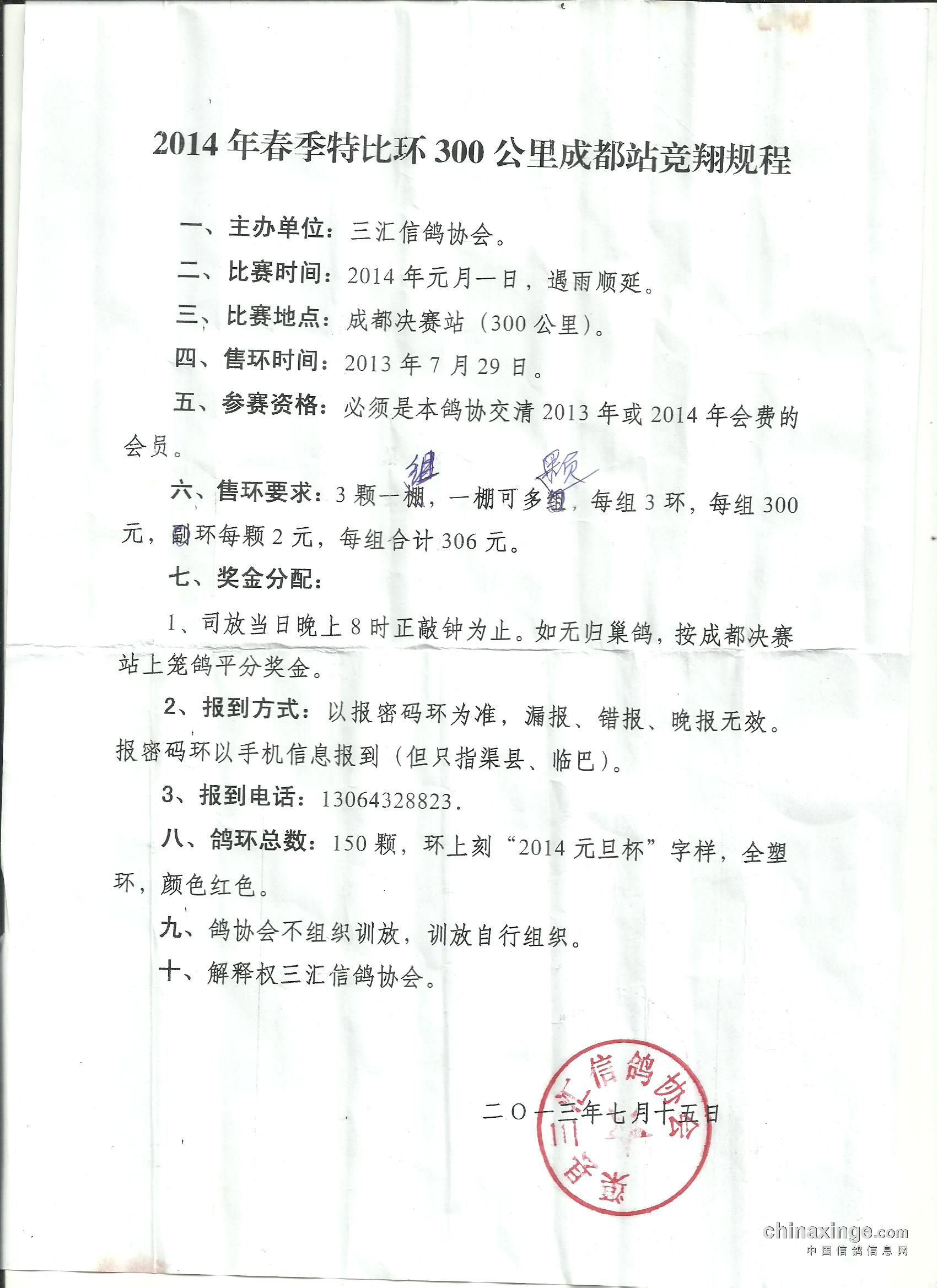 三汇鸽协2017年春百日龄勉县 秋特比礼县 大众环云南昭通牛寨乡竞翔规程