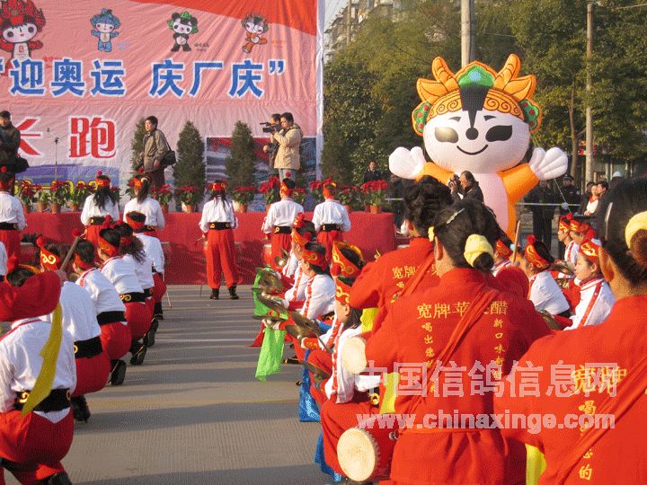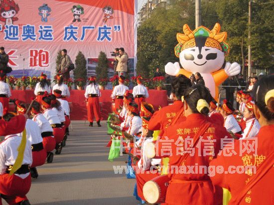彩鸽飞舞迎奥运.锣鼓震天庆厂庆